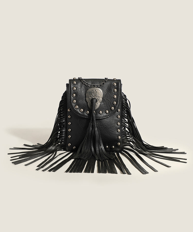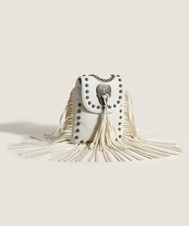 Fashion Brown Tasseled Rivet Faux Leather Messenger Bag