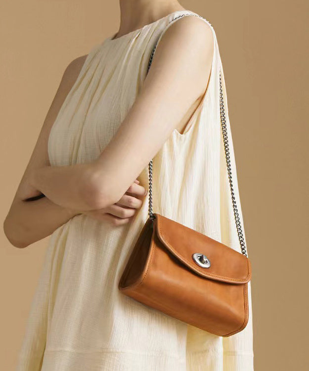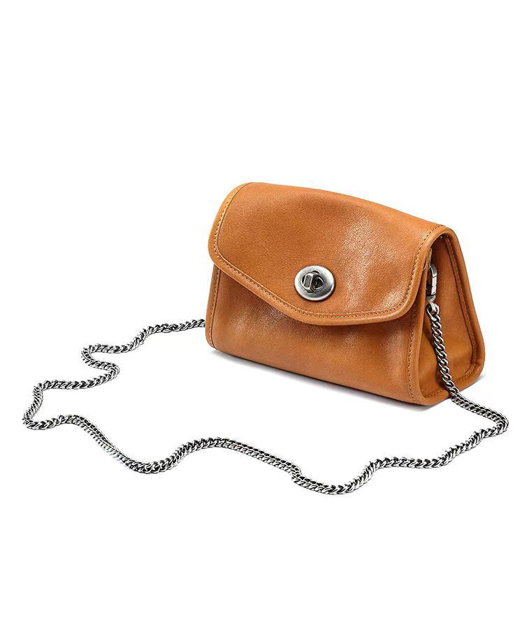 Fashion Caramel Chain Linked Calf Leather Satchel Handbag
