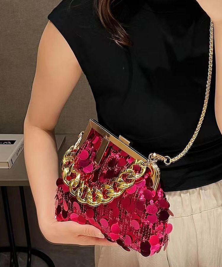 Fashion Gold Sequins Chain Linked Messenger Bag