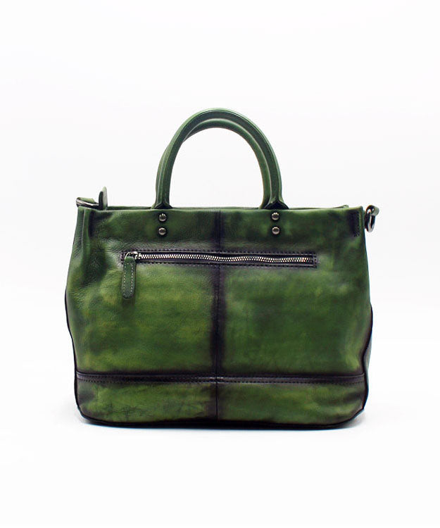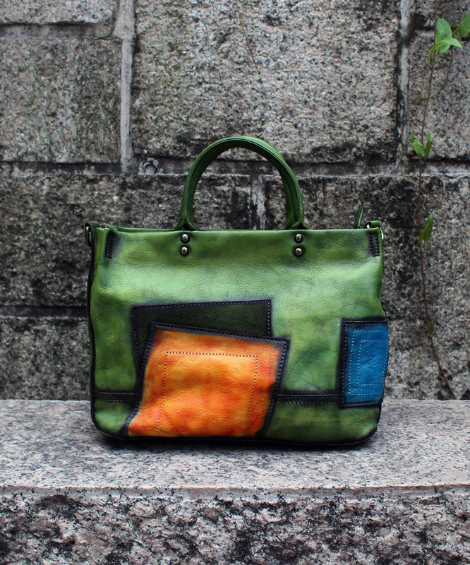 Fashion Green Patchwork Calf Leather Rivet Tote Handbag