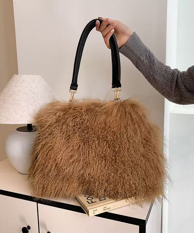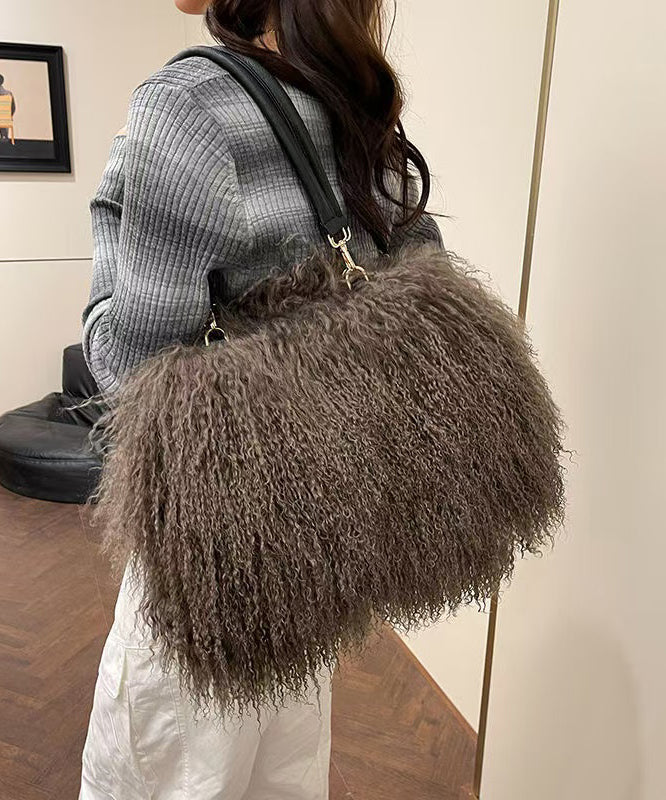 Fashion Versatile Coffee Sheepskin Fur Large Capacity Shoulder Bag