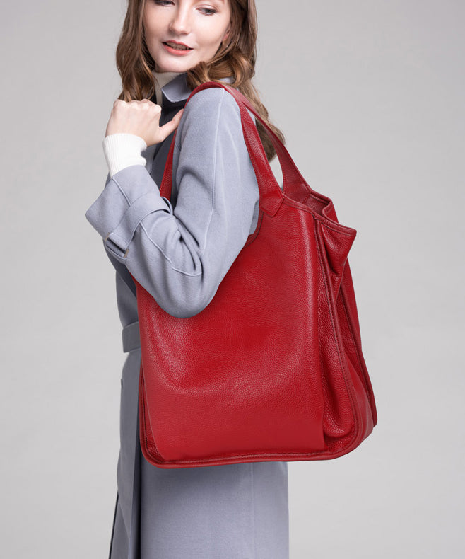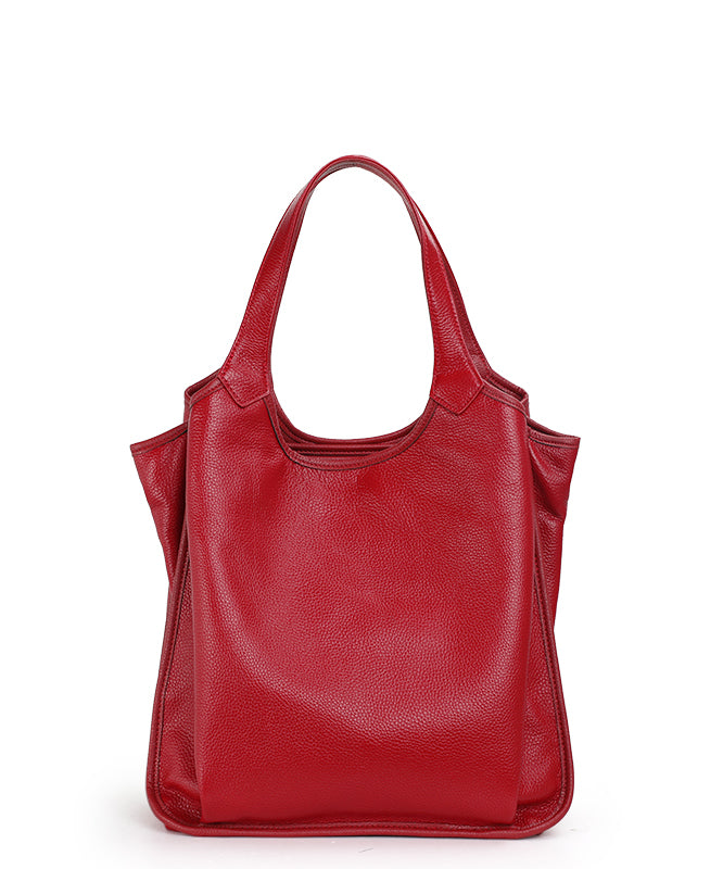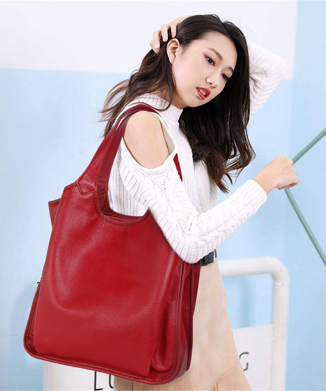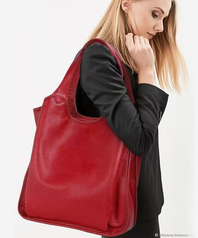 Fashion Versatile Red Large Capacity Calf Leather Satchel Handbag