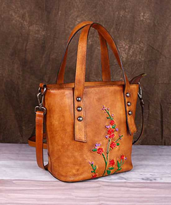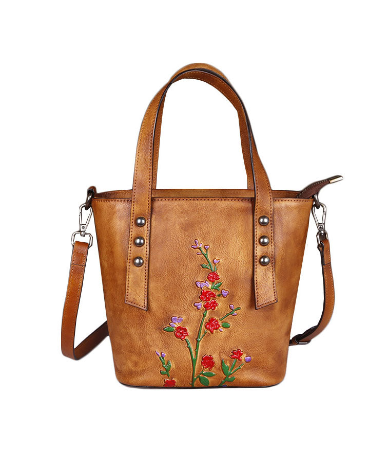Fashion Yellow Embossing Paitings Calf Leather Messenger Bag