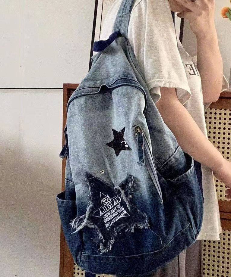 Fine Black Gradient Large Capacity Denim Backpack Bag