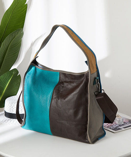 Fine Blue Patchwork Paitings Calf Leather Messenger Bag