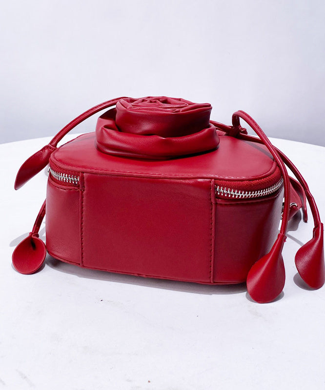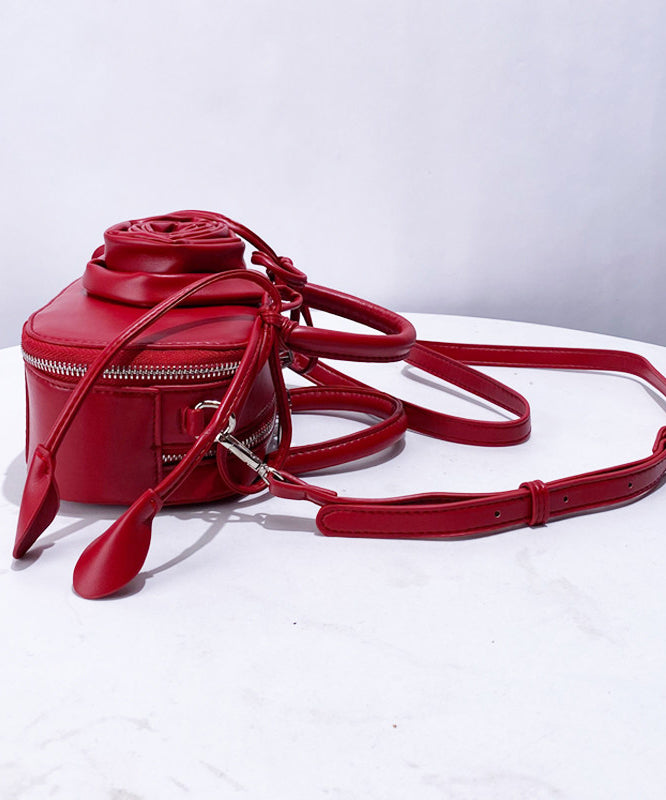 Fine Red 3D Flower Solid Durable Faux Leather Tote Handbag