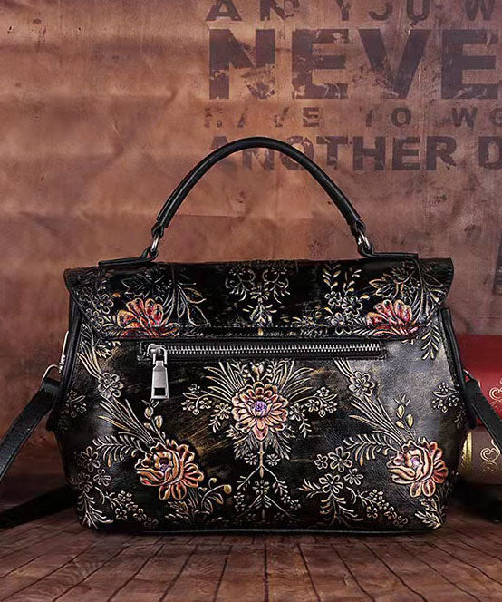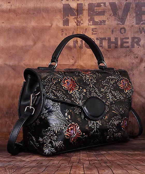 Fine retro gold Embossing Paintings Calf Leather Messenger Bag