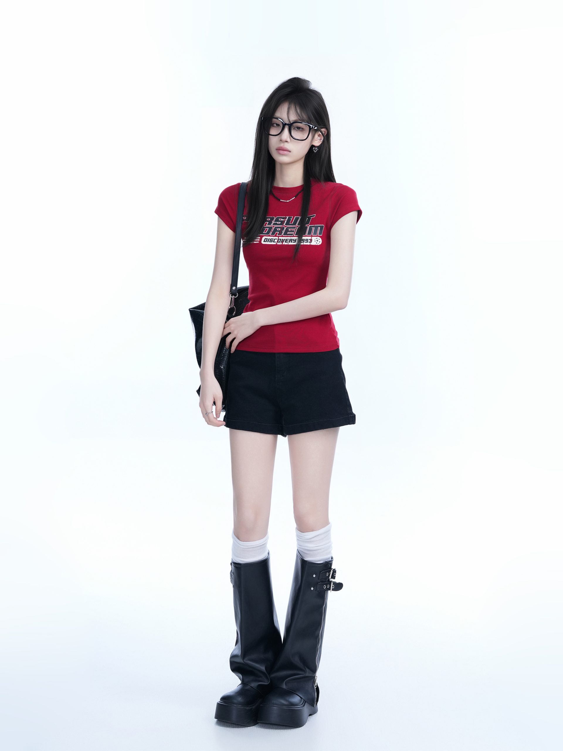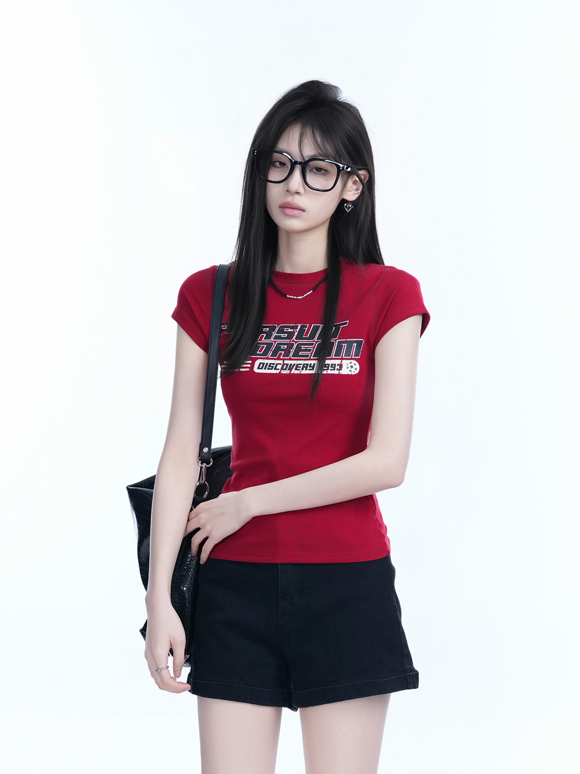 Fitted Red Short Sleeve Women Retro “sit, Eat Until the Moun – Outfit Ideas