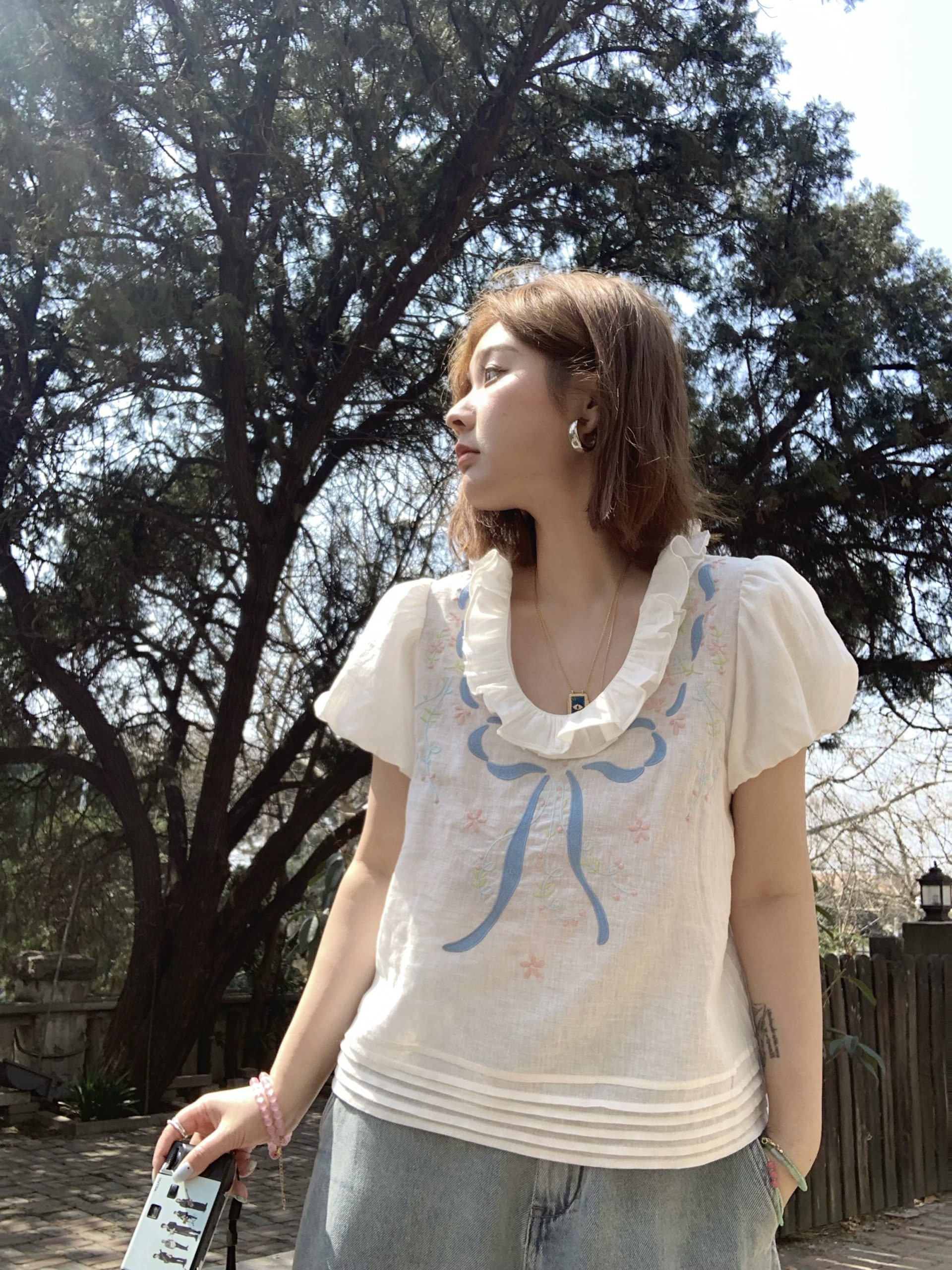 Floral Embroidery Linen Short Sleeve Shirt, Skirt Set Women – Outfit Ideas