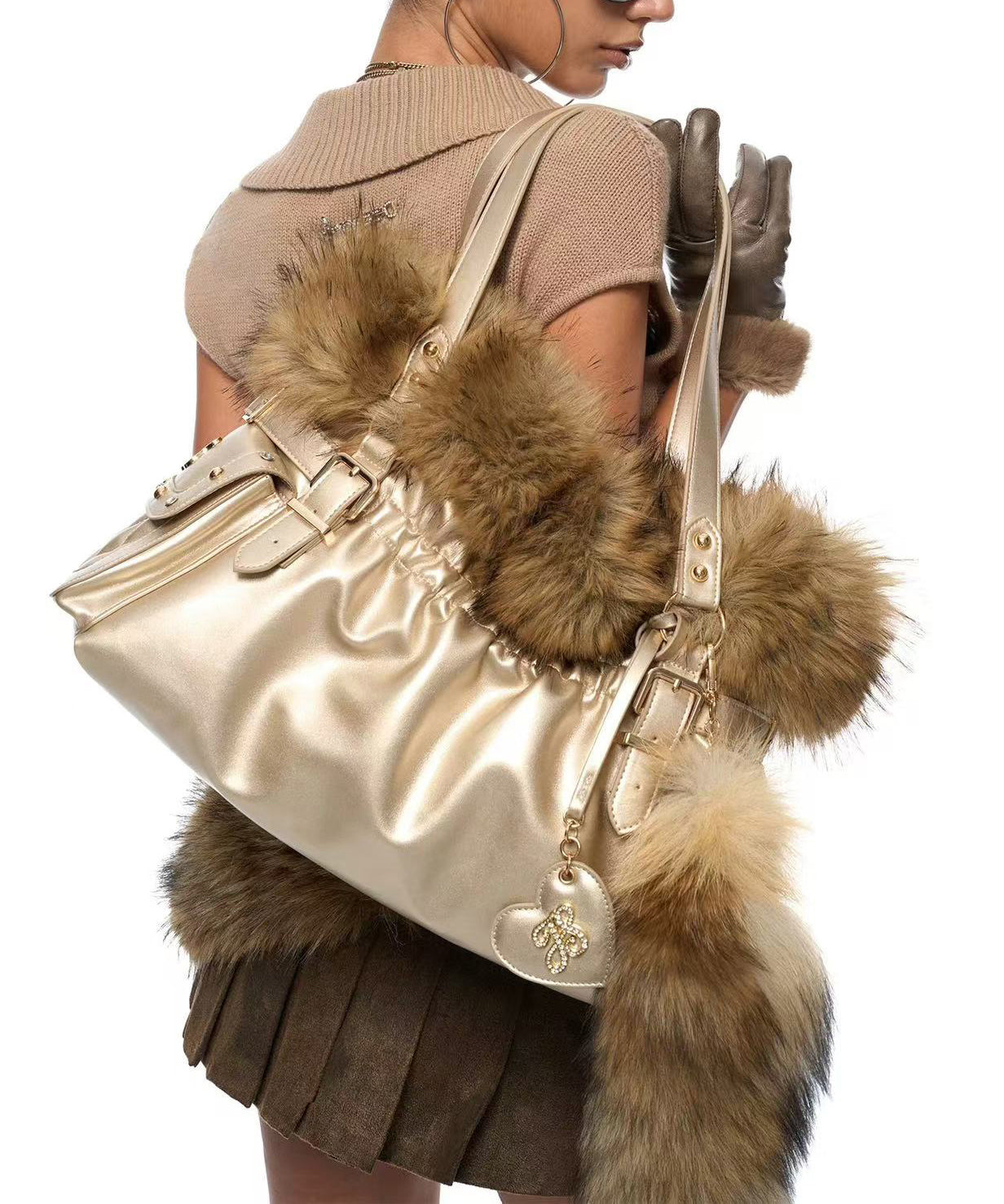 French Apricot Original Design Patchwork Faux Leather Tote Handbag