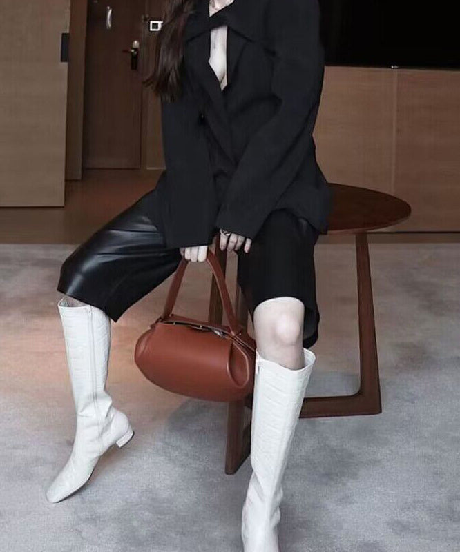 French Black Ellipse Solid Durable Faux Leather Tote Handbag