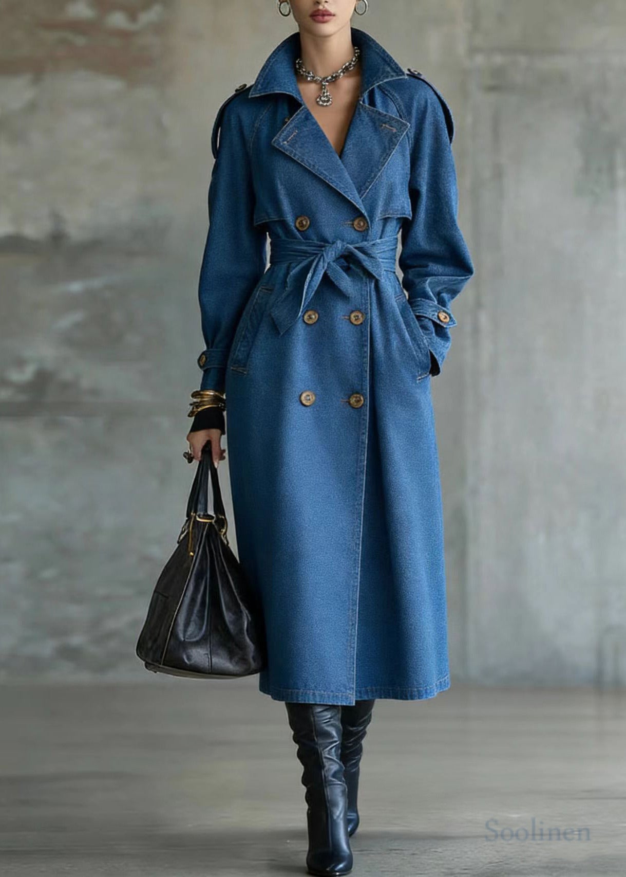 French Blue Oversized Double Breast Denim Trench Coats Spring