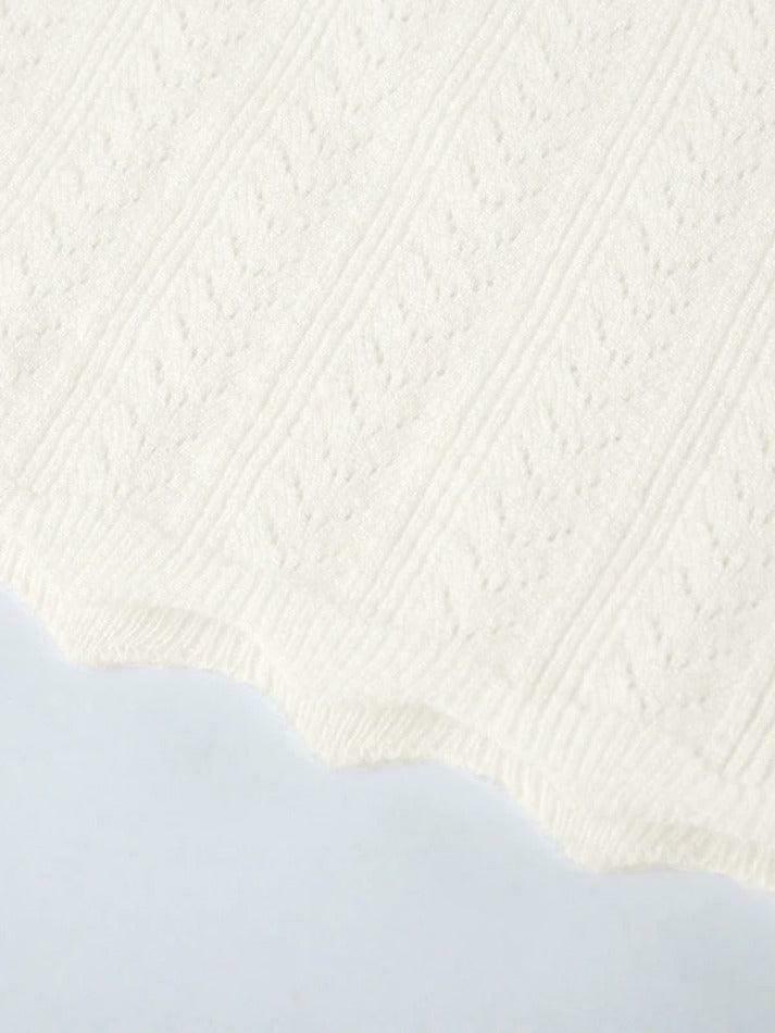 Unique Details: The pointelle design and wavy trim add a vintage and girlish charm to this top, making it distinctive and fashionable.