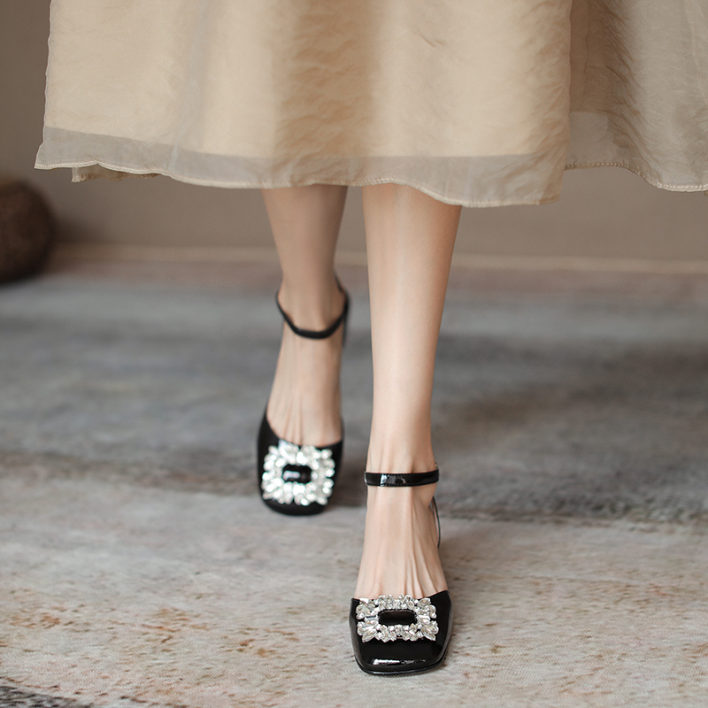 Genuine Leather Chunky High Heel Sals Women Rhinone Buckle Literary Square Toe High-quality product featuring prom dresses, spring outfits, business casual outfits and more. Modern design that fits the latest trends. Premium materials ensure durability and comfort. Order now for special offers! Product designed with attention to every detail. Suitable for all occasions and personal styles.