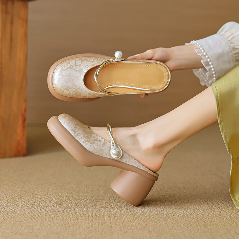 Genuine Leather Open Toe Half Slippers Women Summer High Hee – Outfit Ideas