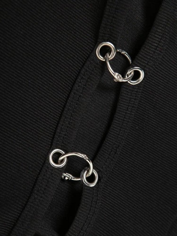 Channel underground energy with this grunge cut out hooded top. Designed with a built-in hood, metal hook details, and a chest cutout, it nails that rebellious streetwear mood. The cropped fit pairs perfectly with cargos, techwear, or layered sleeves for a full alt vibe.
