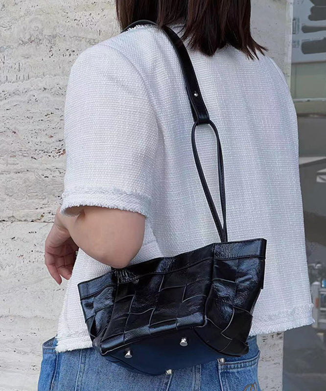 Handmade Black Plaid Patchwork Faux Leather Satchel Handbag