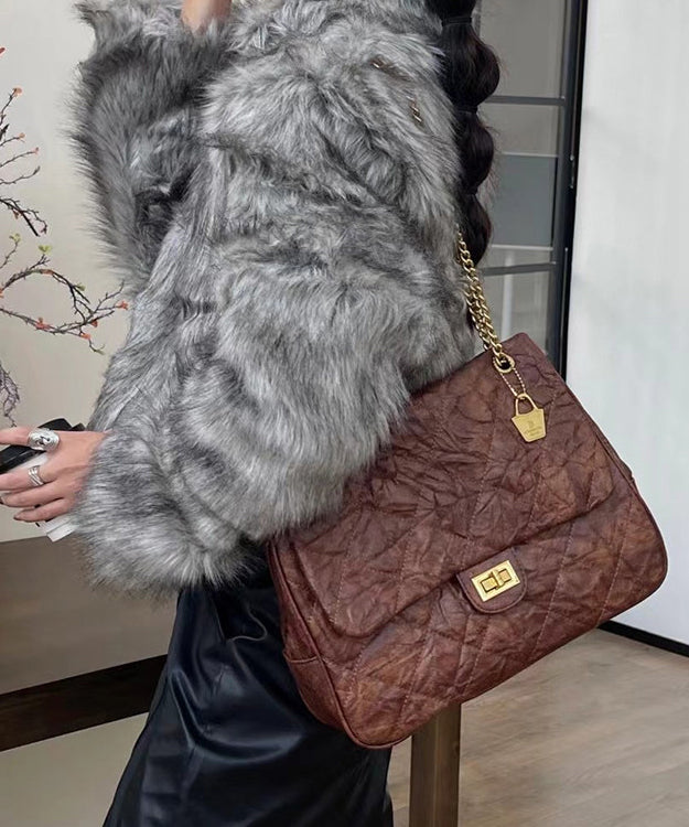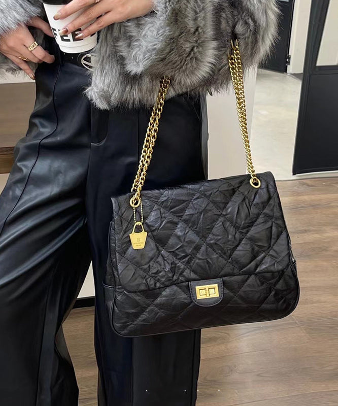 Handmade Black Plaid Wrinkled Faux Leather Flap Bag