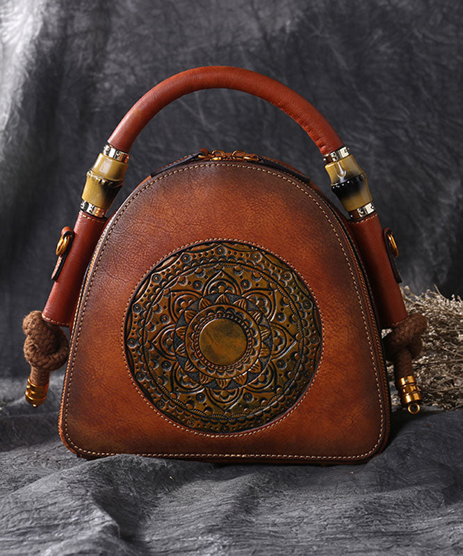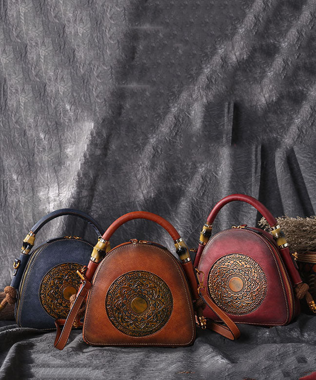 Handmade Grey The Sunflowers Paitings Embossing Calf Leather Satchel Bag Handbag
