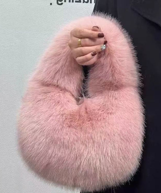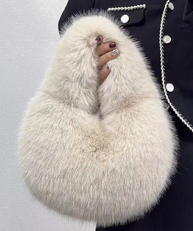 Handmade Khaki Stylish Faux Fur Satchel Handbag