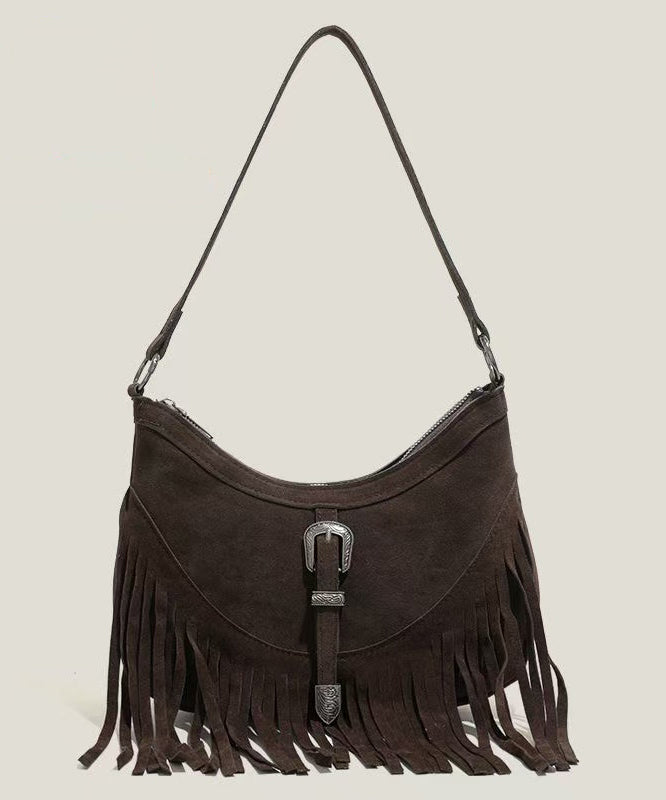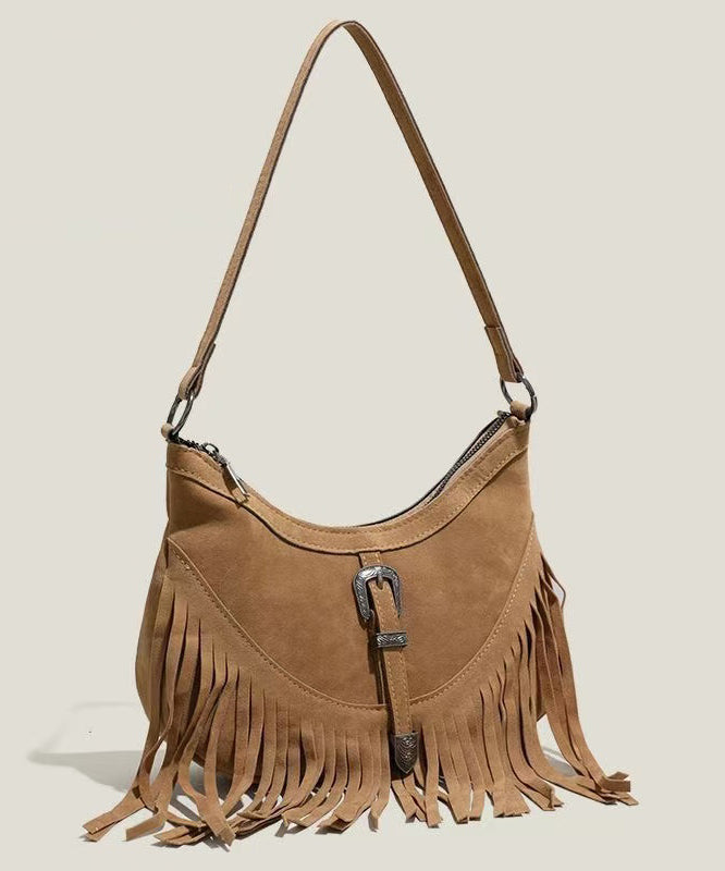 Handmade Khaki Tasseled Solid Durable Fine Suede Messenger Bag