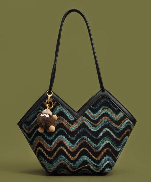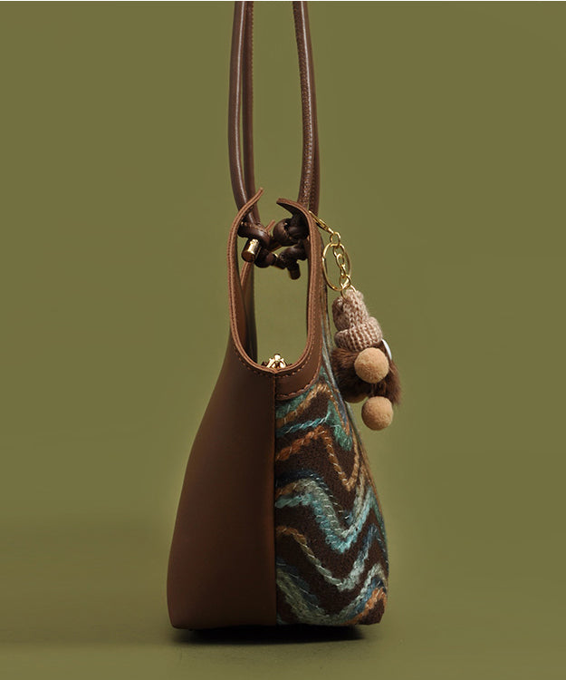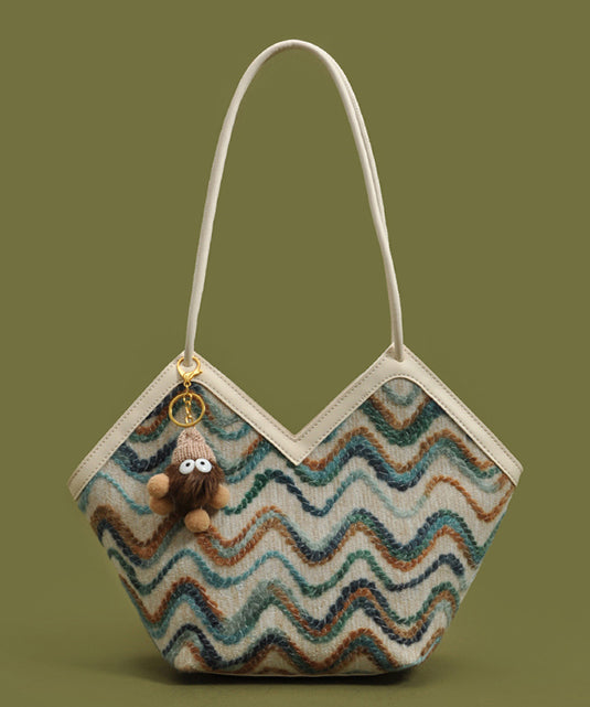 Handmade Striped Patchwork Faux Leather Woolen Shoulder Bags
