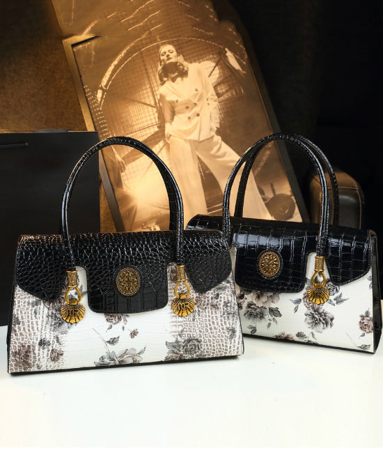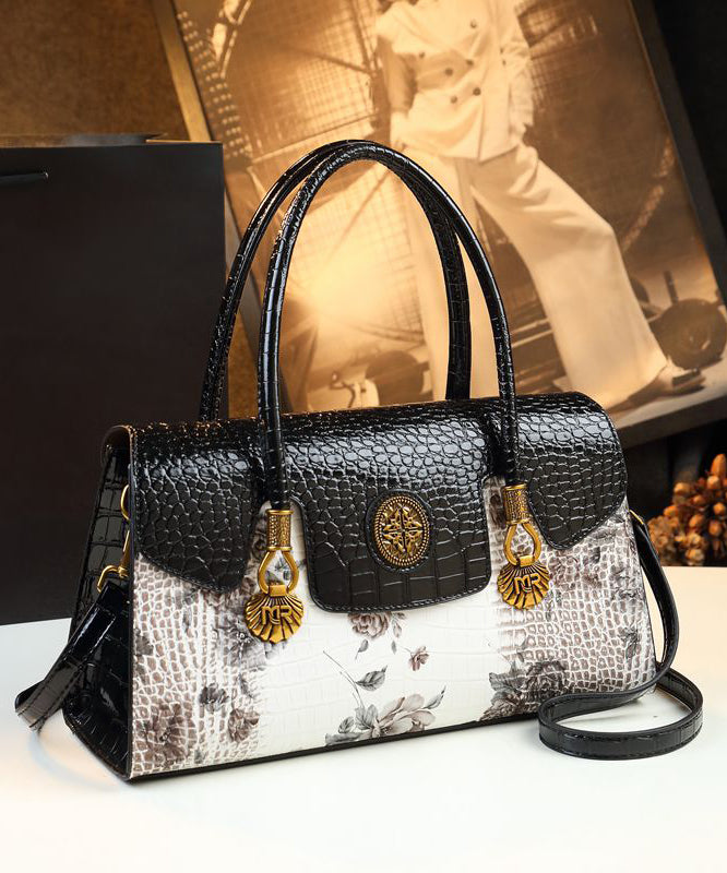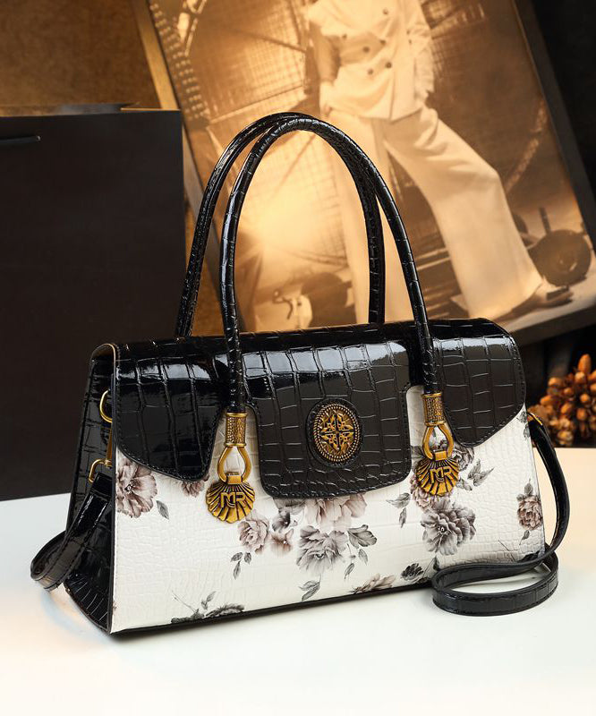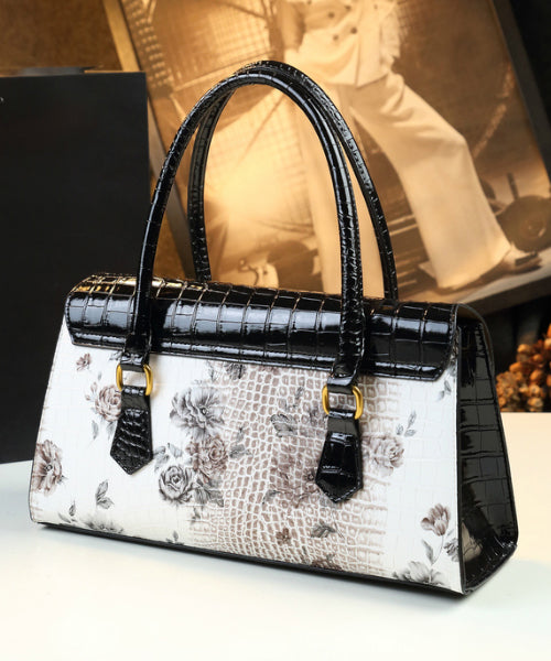 Handmade White Print Solid Durable Faux Leather Tote Handbag
