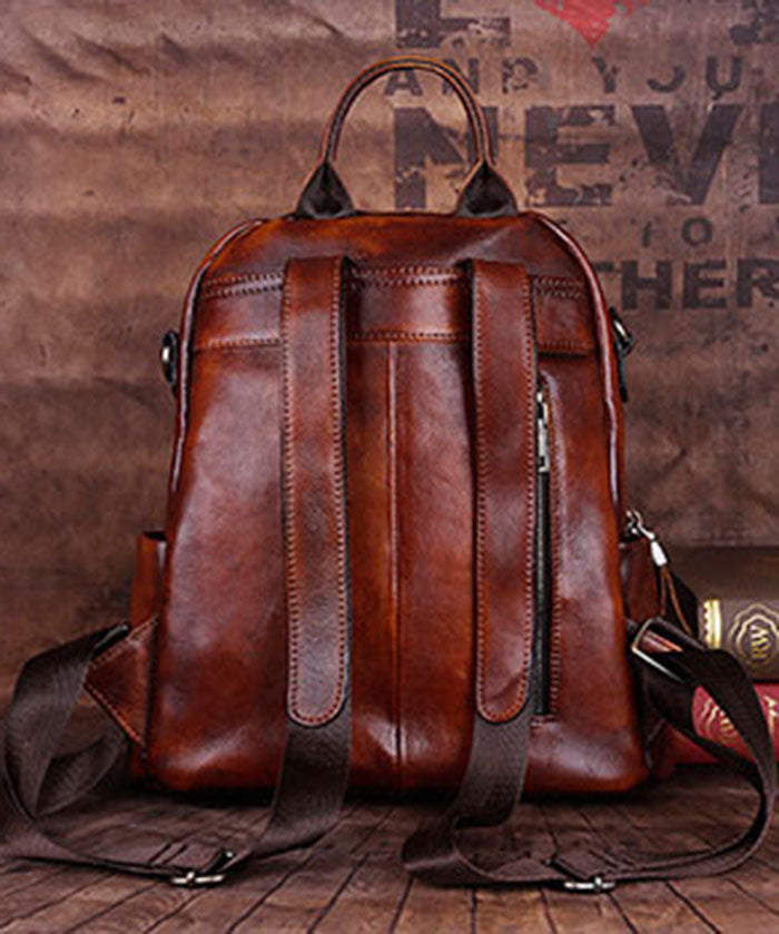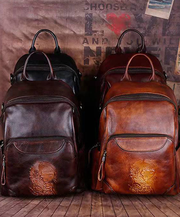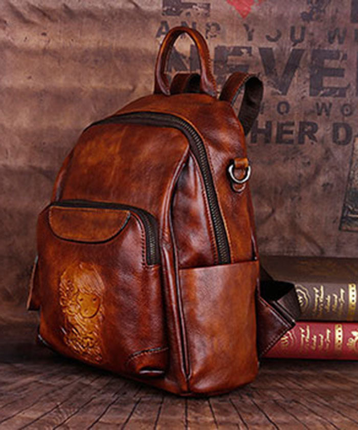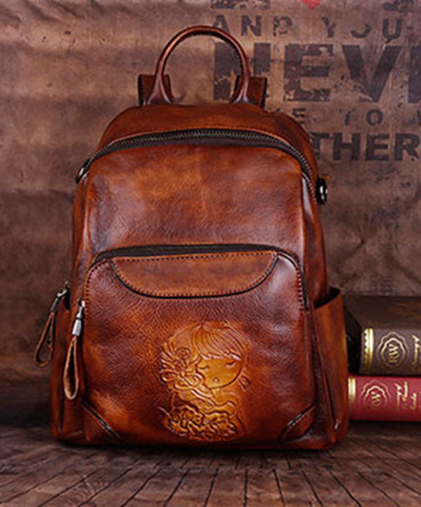 Handmade Yellow Versatile Paitings Calf Leather Backpack Bag