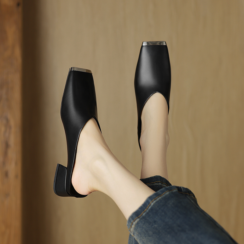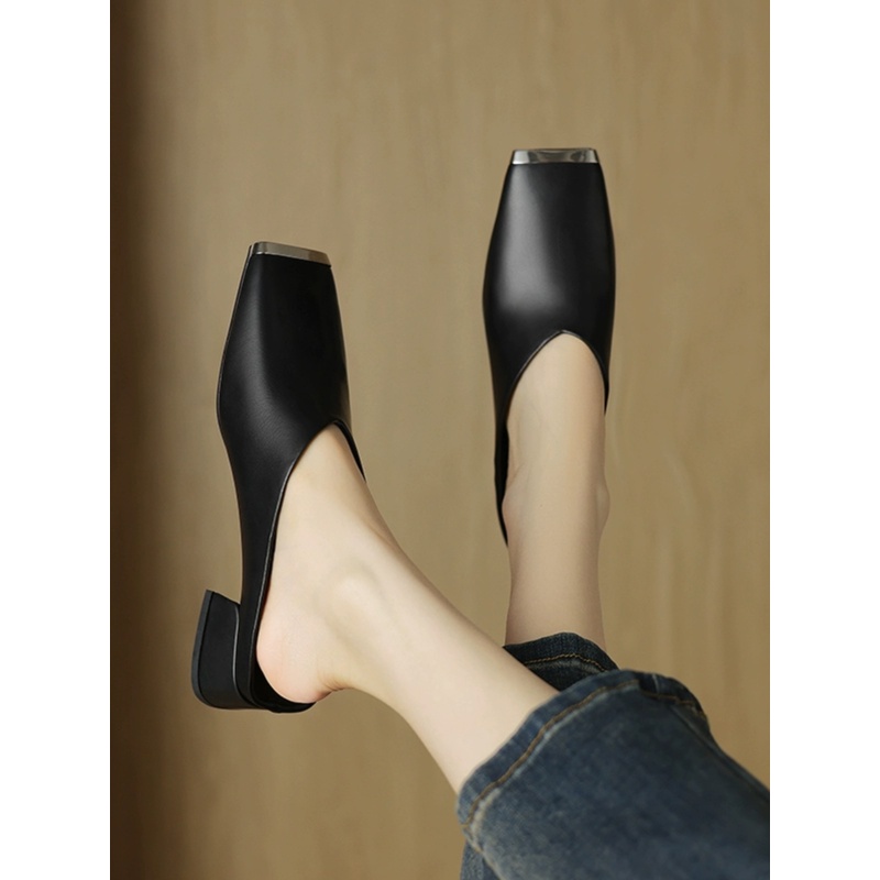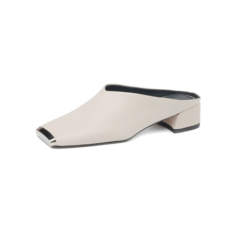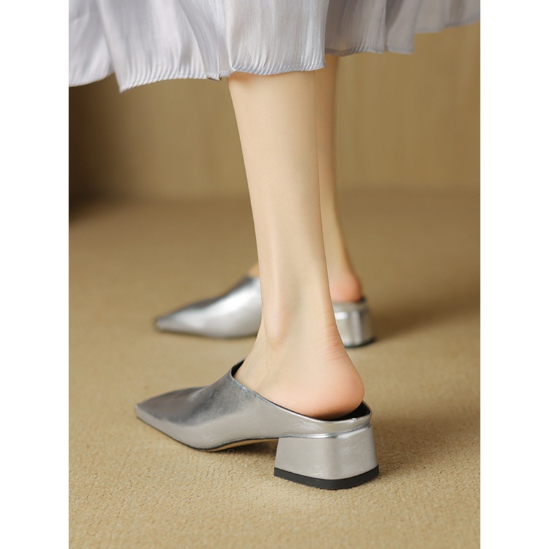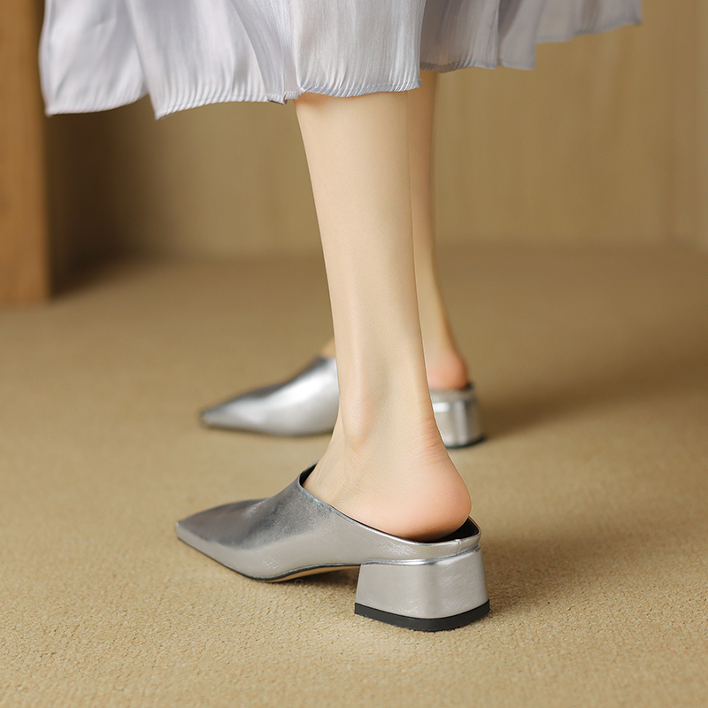 Genuine Leather Open Toe Half Slippers Chunky Heels Outdoor – Outfit Ideas