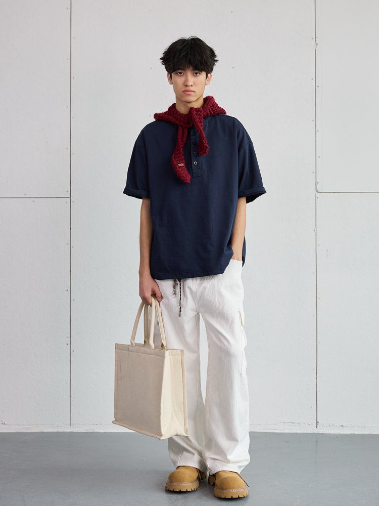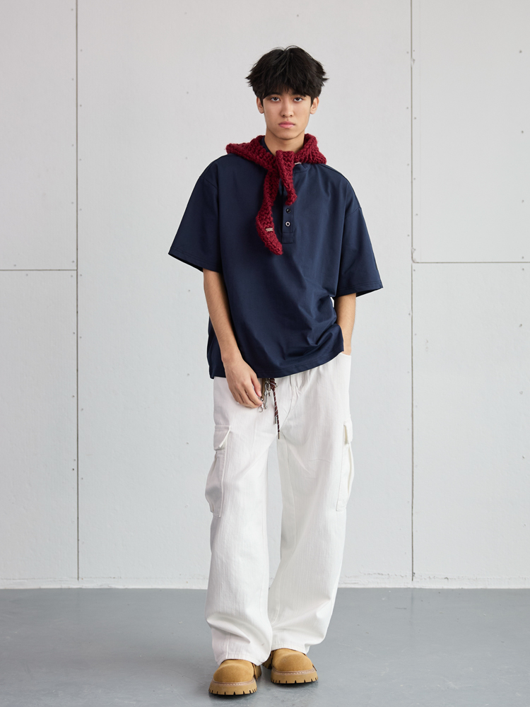 Elevate your summer wardrobe with our High-End Heavyweight Oversized Henley Collar Short Sleeve T-Shirt for Men. Designed with a loose fit and a trendy round neck, this tee combines comfort and style effortlessly, making it a must-have for the Y2K fashion enthusiast. Crafted from premium materials, it ensures durability while providing a relaxed silhouette that flatters every body type. Perfect for casual outings or layering, this versatile piece is sure to become your new go-to. Don’t miss out on this essential addition to your collection—add it to your cart today!