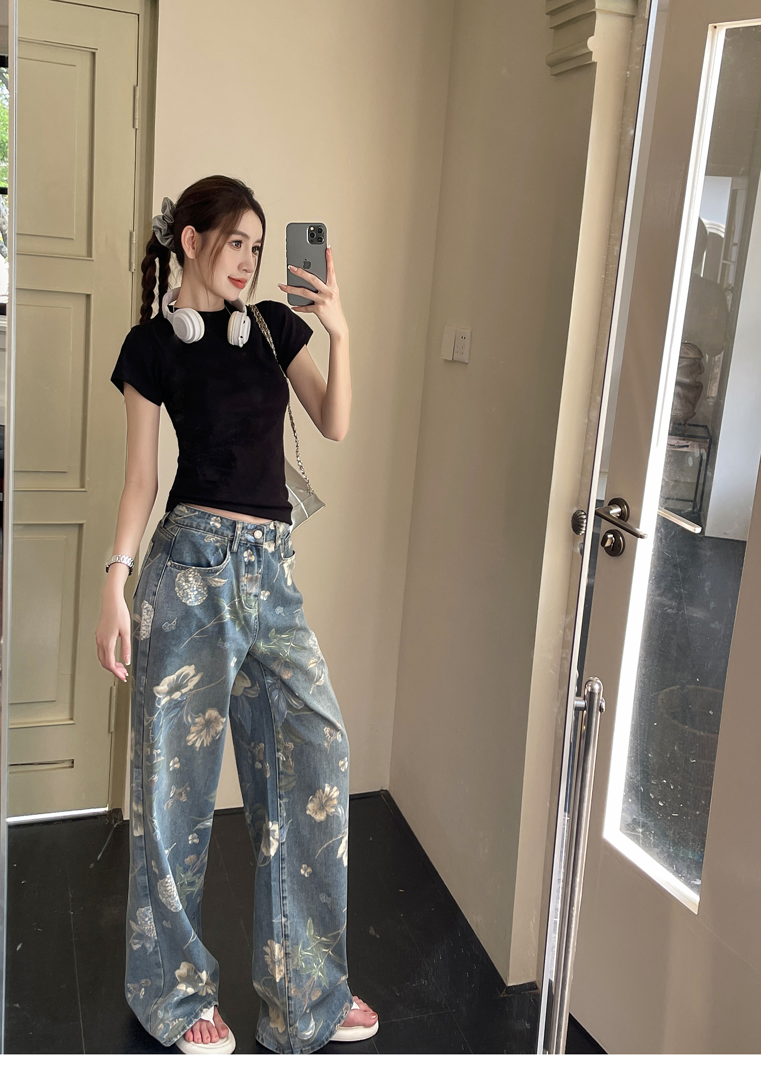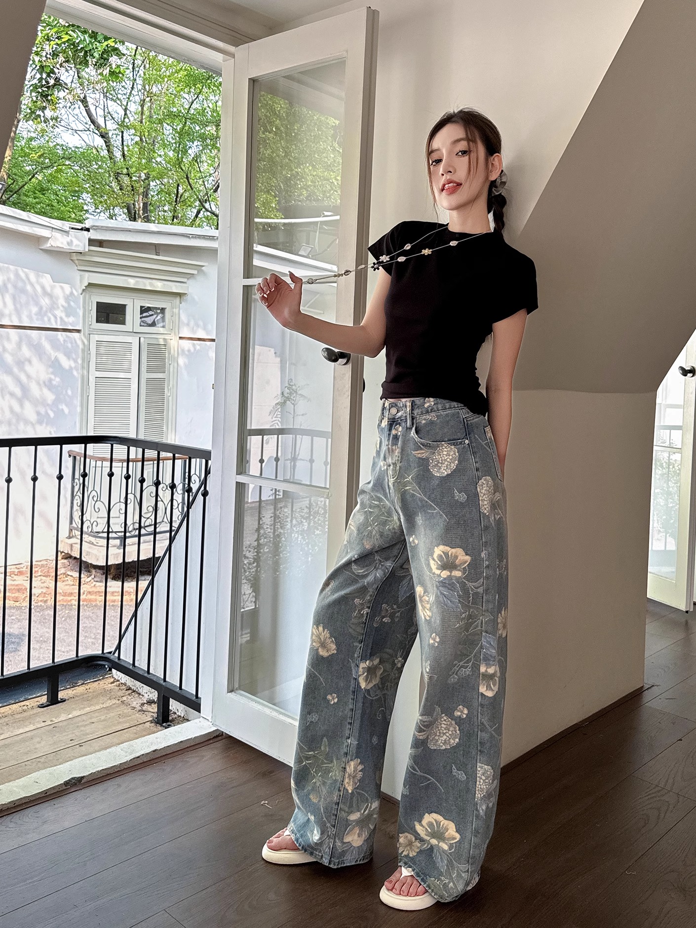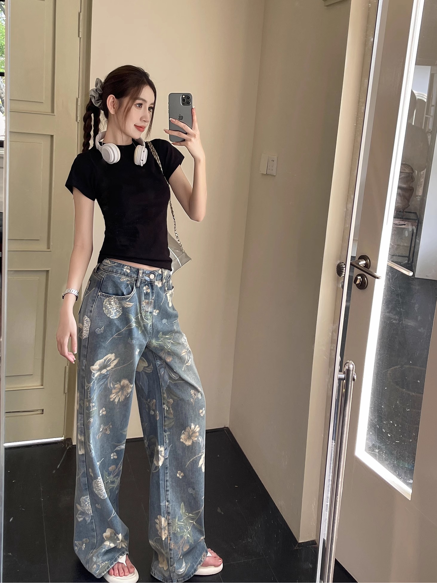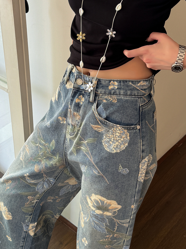 High Waisted Retro Printed Wide Leg Jeans Women Lightweight Draped Floor Length Pants Tall Individuals High-quality product featuring prom dresses, spring outfits, business casual outfits and more. Modern design that fits the latest trends. Premium materials ensure durability and comfort. Order now for special offers! Product designed with attention to every detail. Suitable for all occasions and personal styles.