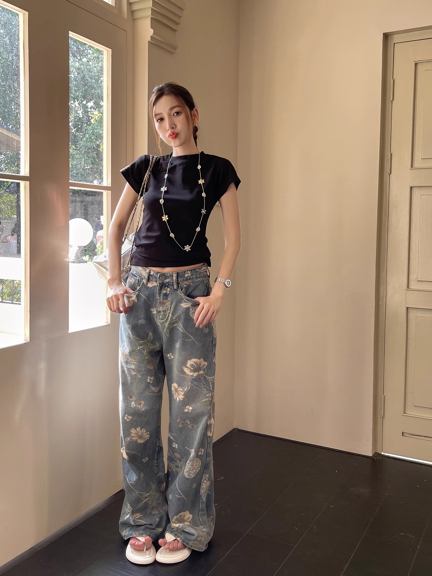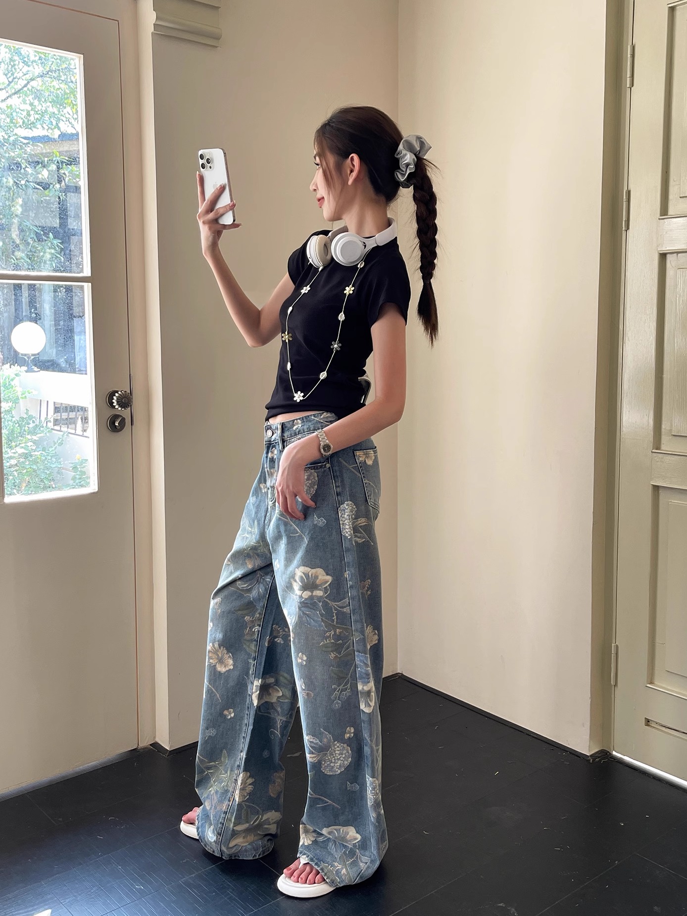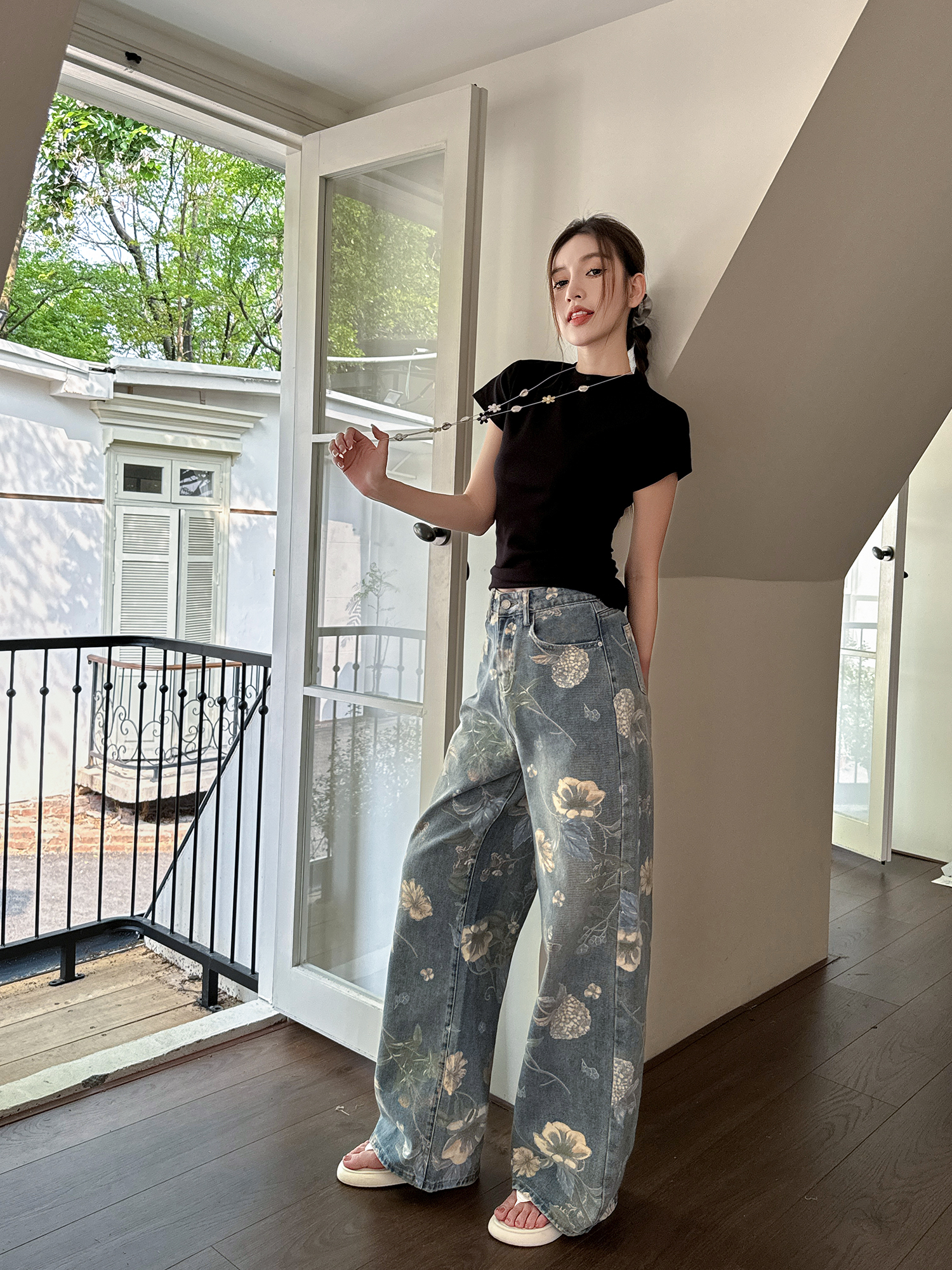 High Waisted Retro Printed Wide Leg Jeans Women Lightweight Draped Floor Length Pants Tall Individuals High-quality product featuring prom dresses, spring outfits, business casual outfits and more. Modern design that fits the latest trends. Premium materials ensure durability and comfort. Order now for special offers! Product designed with attention to every detail. Suitable for all occasions and personal styles.