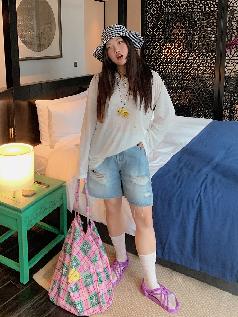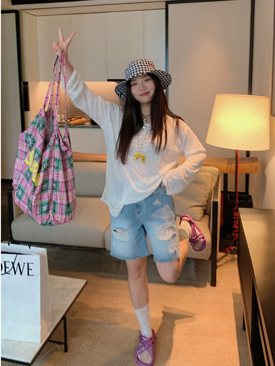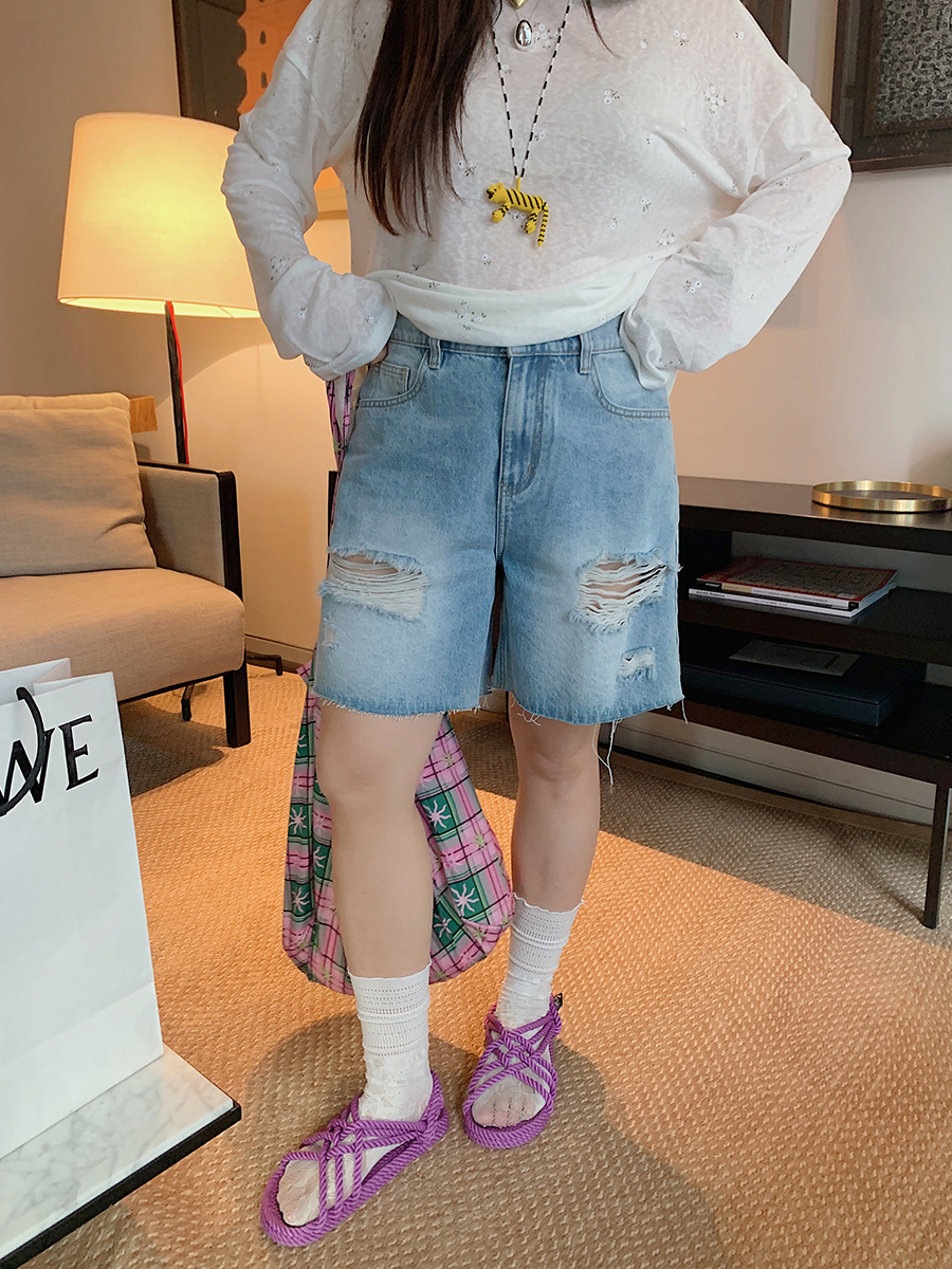 High Waisted Ripped Denim Shorts Women, Plus Size Five Point – Outfit Ideas