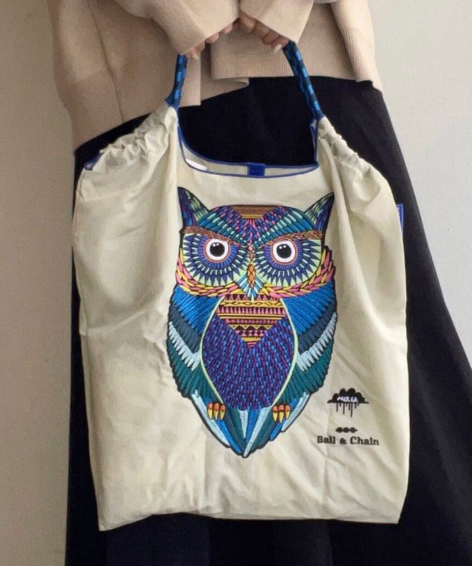 Japanese Style Embroidered Owl Large Capacity Shopping Bag 2025