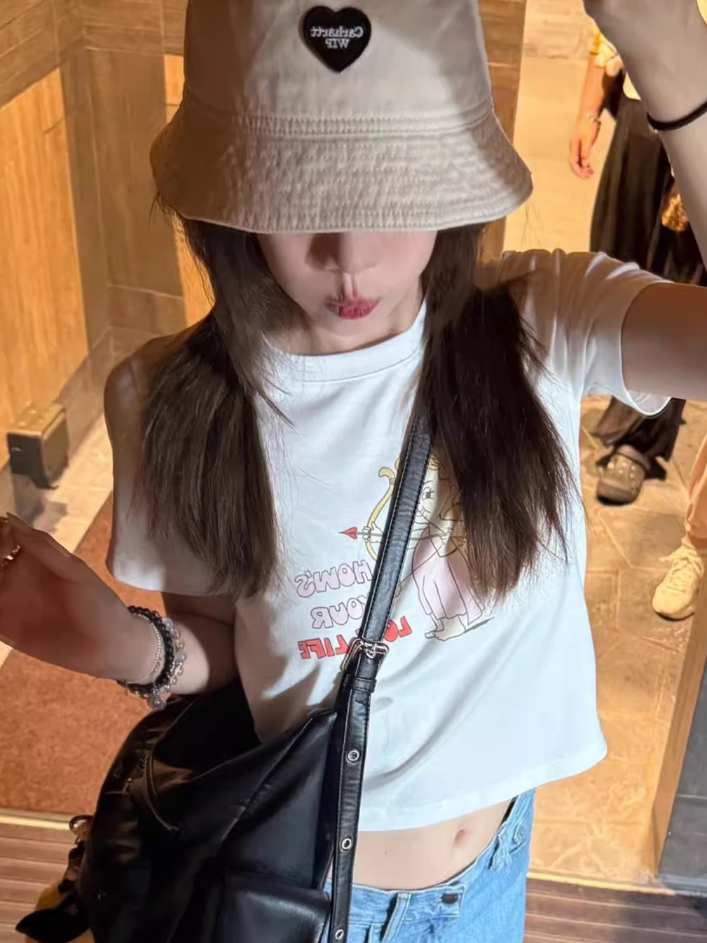 Korean Cupid Cartoon Print Off Shoulder Cropped Slim Fit Lightweight Cotton Short Sleeve High-quality product featuring prom dresses, spring outfits, business casual outfits and more. Modern design that fits the latest trends. Premium materials ensure durability and comfort. Order now for special offers! Product designed with attention to every detail. Suitable for all occasions and personal styles.