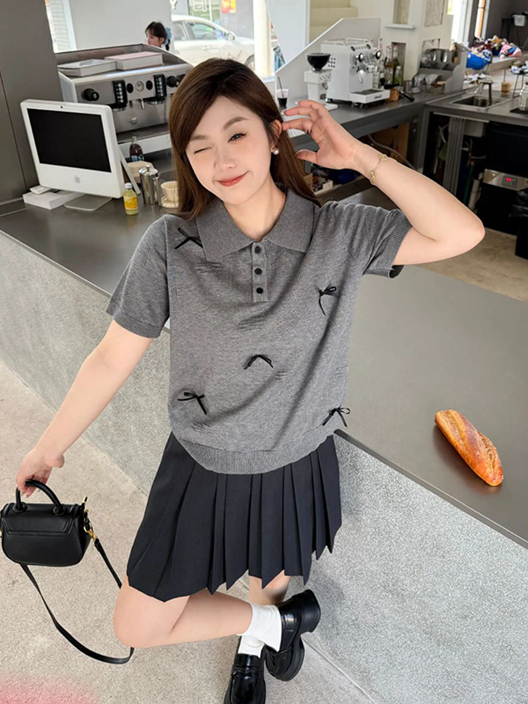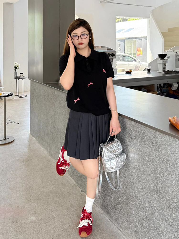 Korean Plus Size Short Sleeve Polo Shirt Women Flattering Knitted Summer Blo Curvy Figures High-quality product featuring prom dresses, spring outfits, business casual outfits and more. Modern design that fits the latest trends. Premium materials ensure durability and comfort. Order now for special offers! Product designed with attention to every detail. Suitable for all occasions and personal styles.
