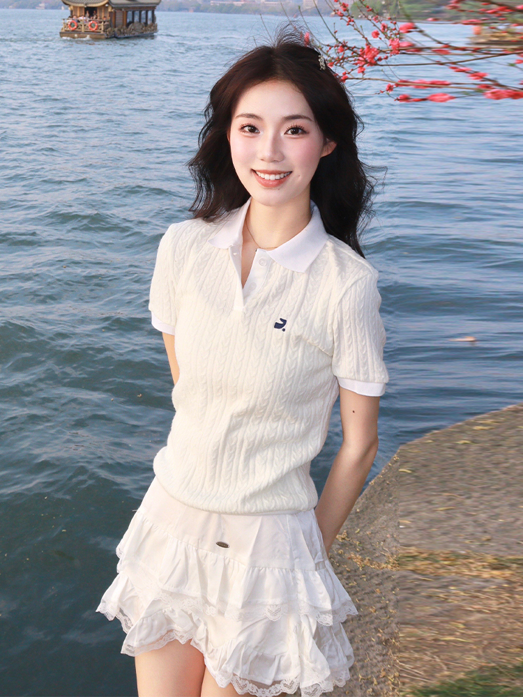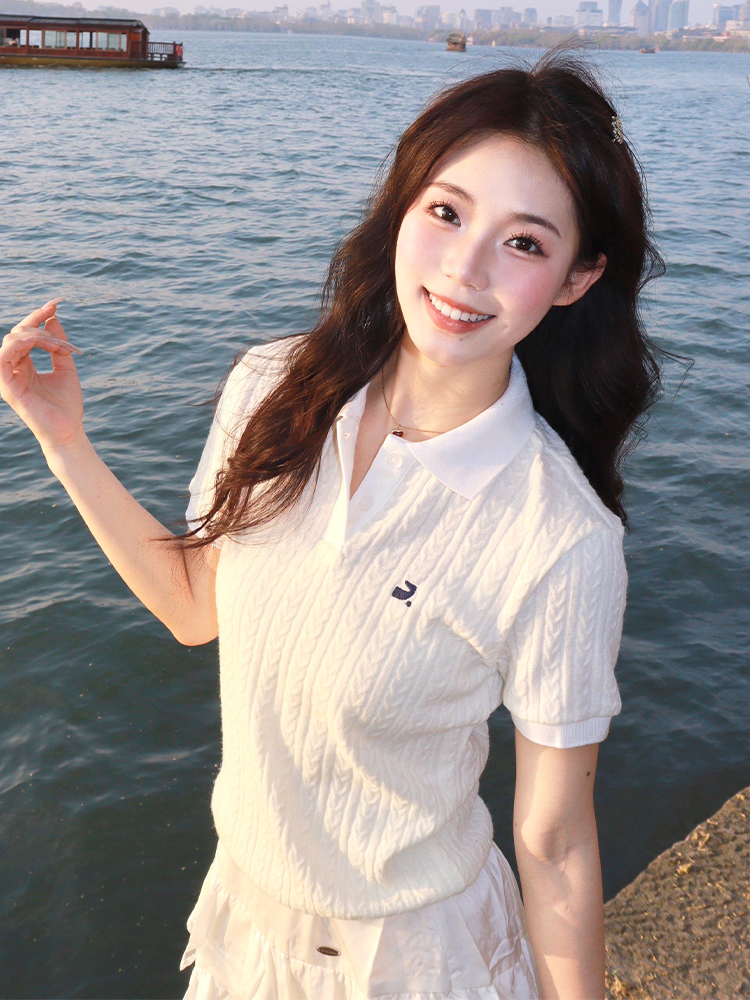 Korean Retro Twisted Knit Short Sleeve Women Summer Polo Shi – Outfit Ideas