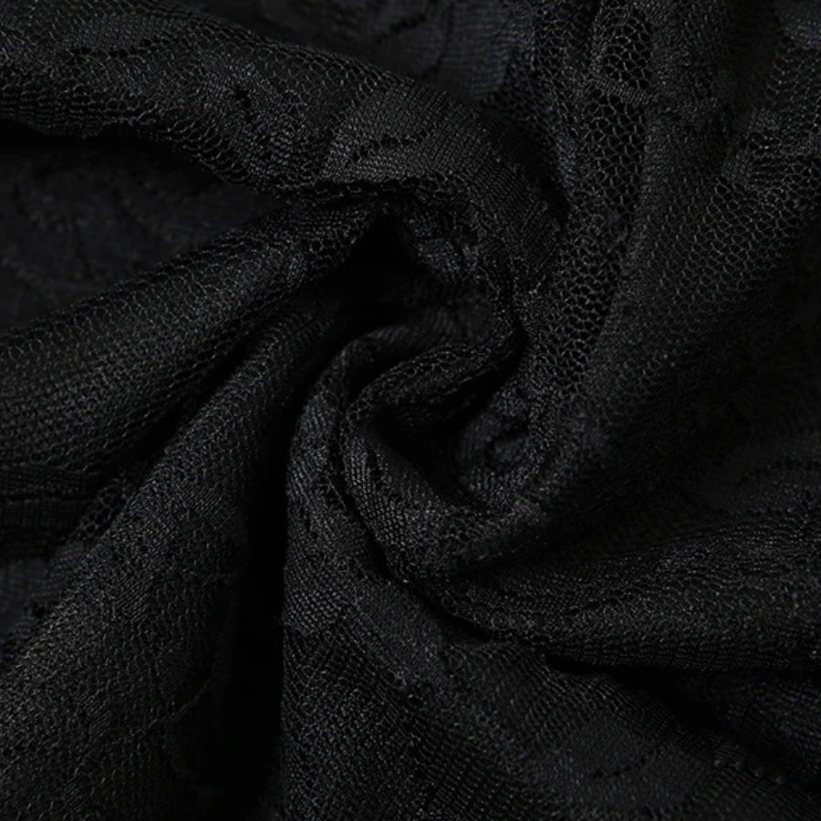 Turn heads in this ultra-flattering lace sheer mini dress. With its corset-style mesh midsection and romantic floral lace, it’s giving soft goth meets sultry siren.