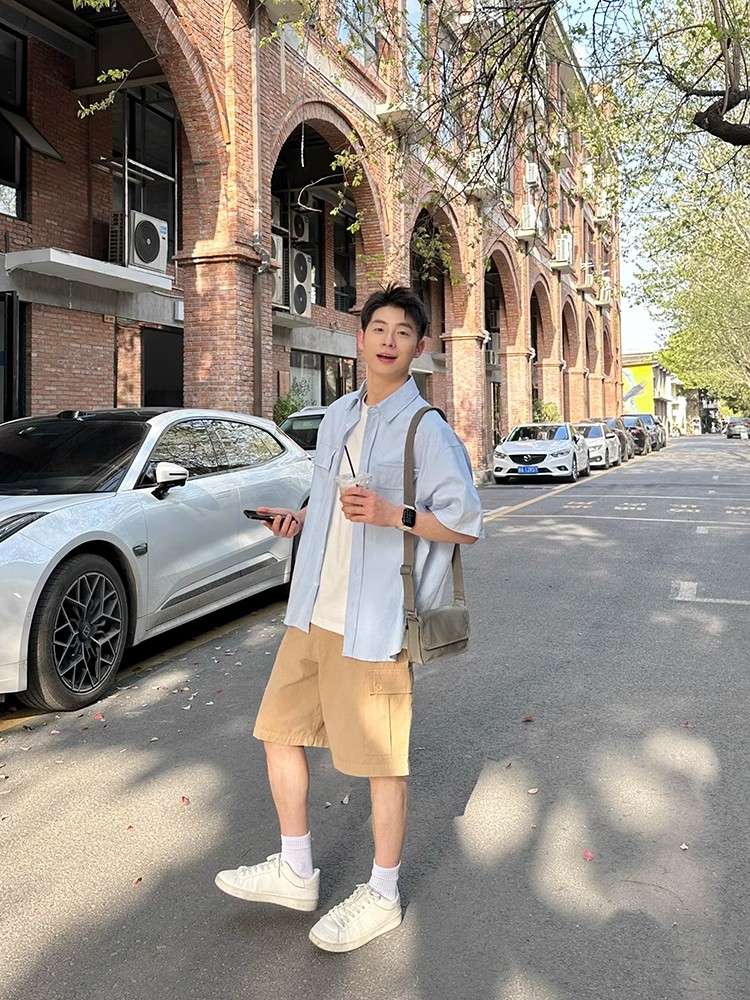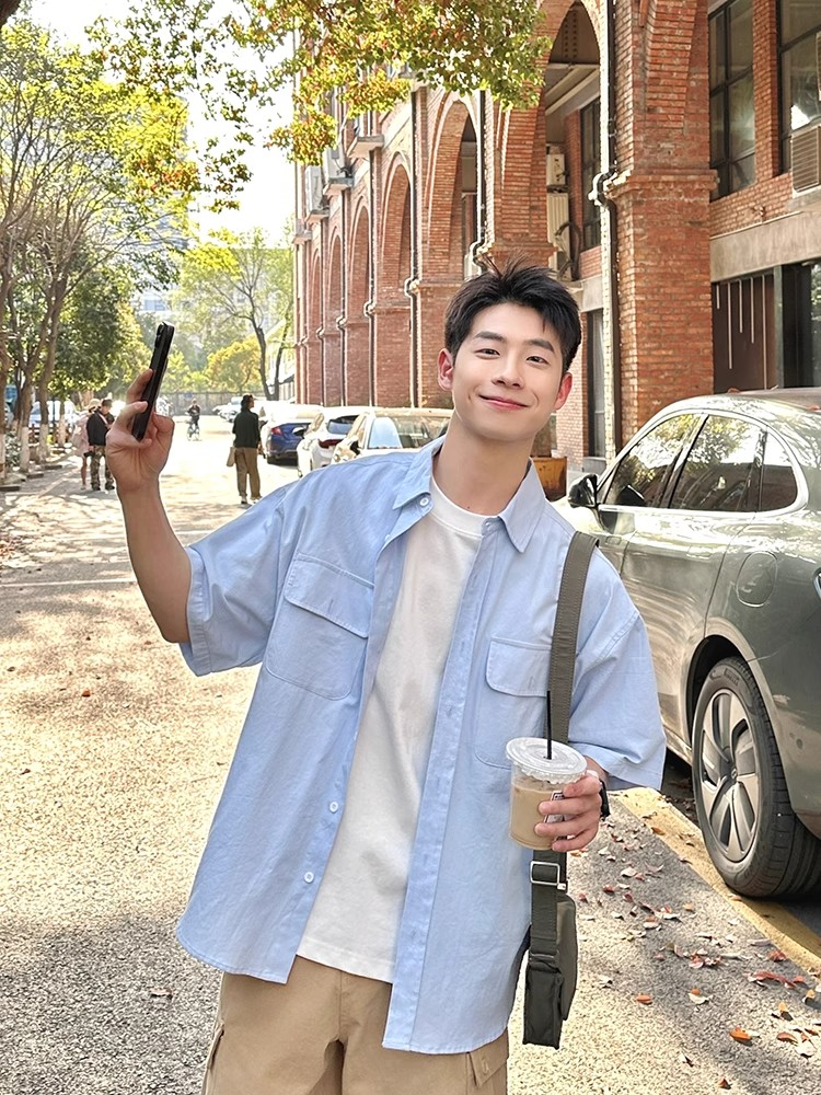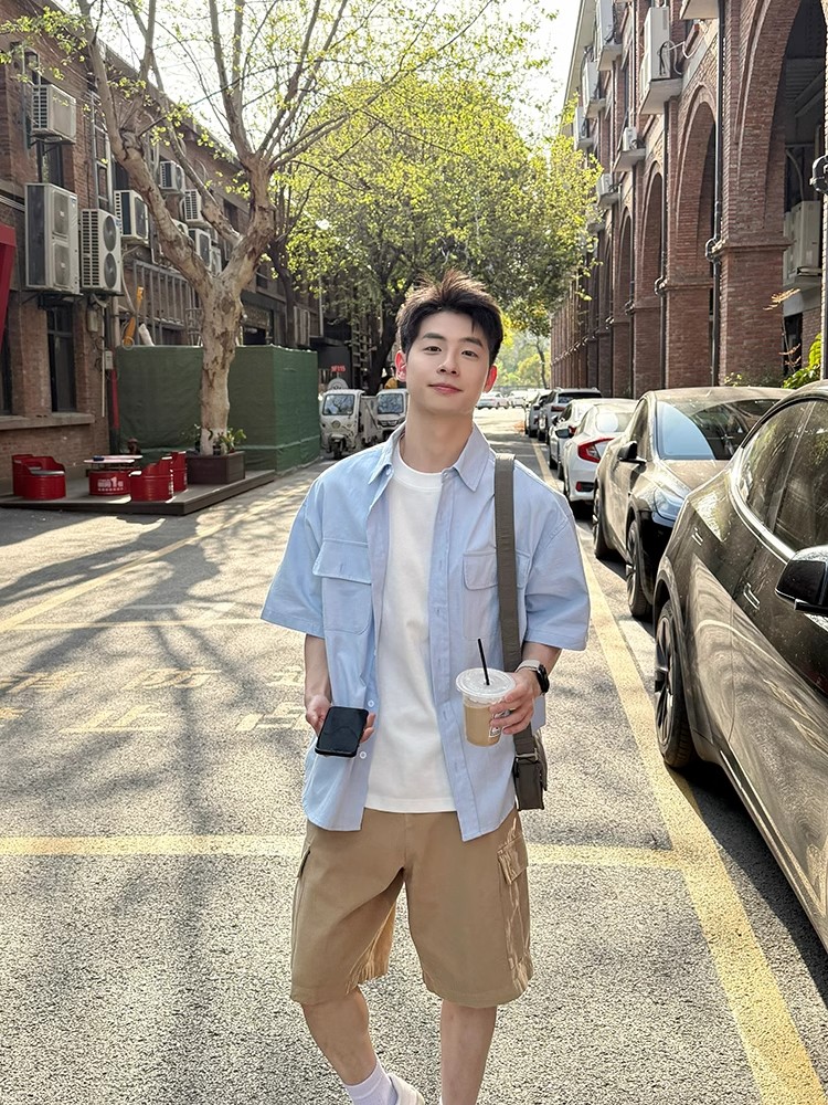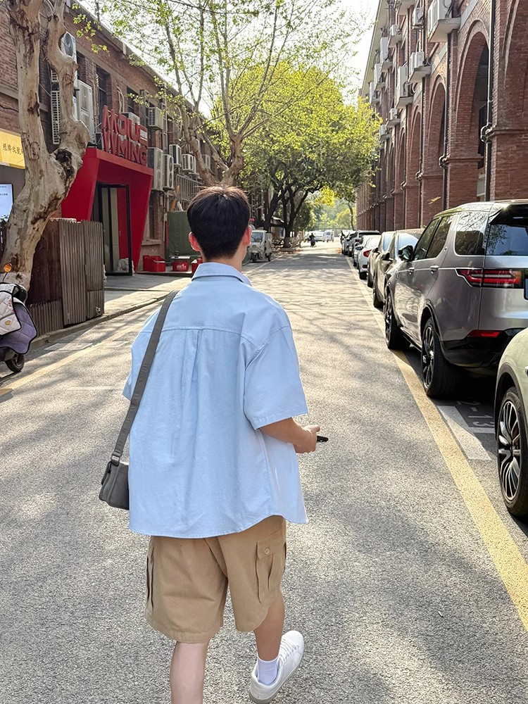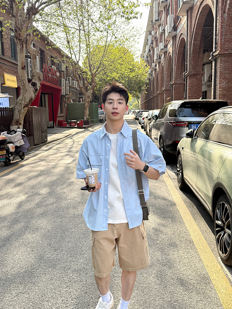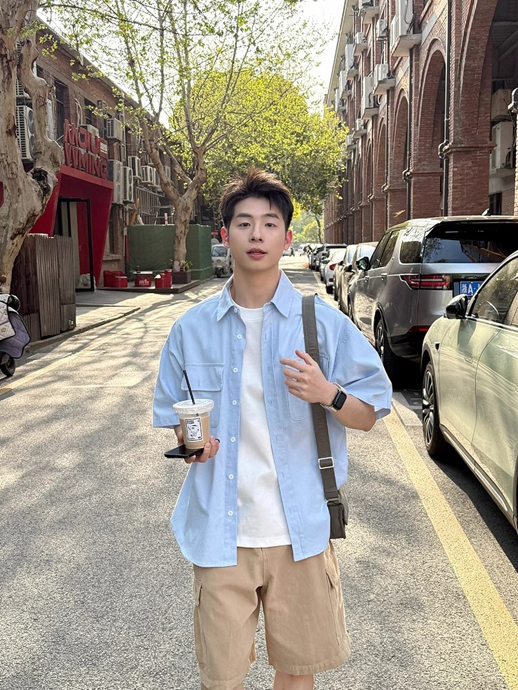 Light Blue Multi Pocket Short Sleeve Shirt Men, Women Casual – Outfit Ideas