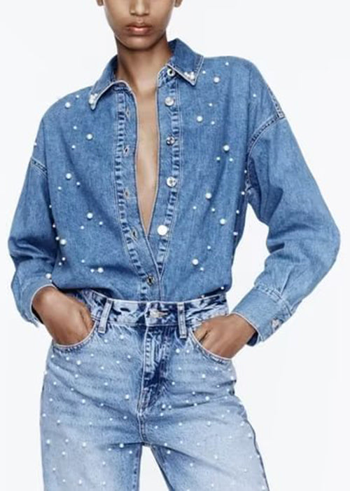 Be the first to review “Loose Blue Peter Pan Collar Pearl Denim Shirt Fall” Cancel reply