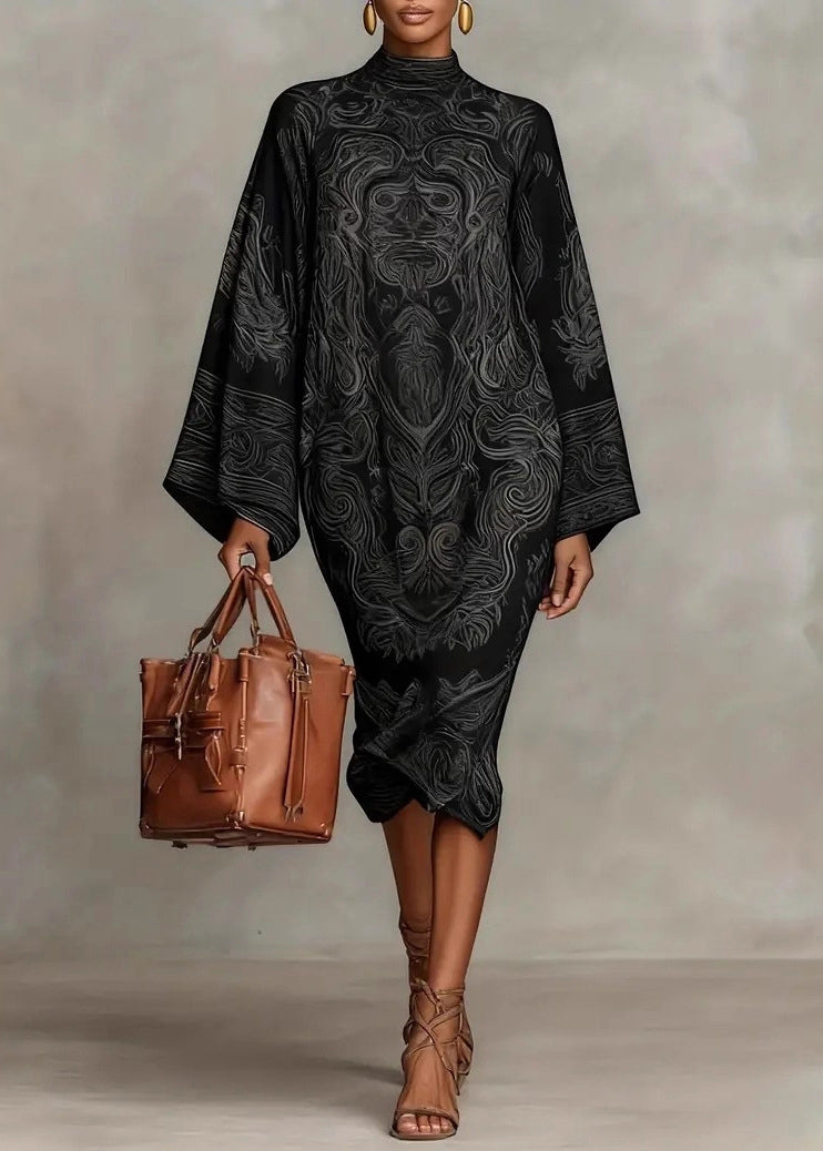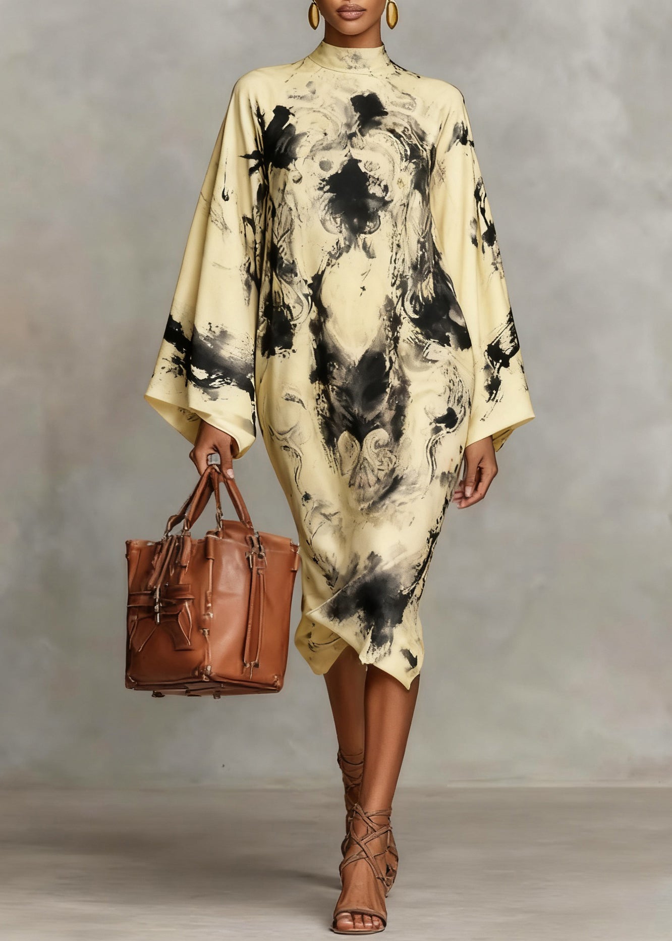 Be the first to review “Loose Blue Stand Collar Print Silk Long Dresses Spring” Cancel reply