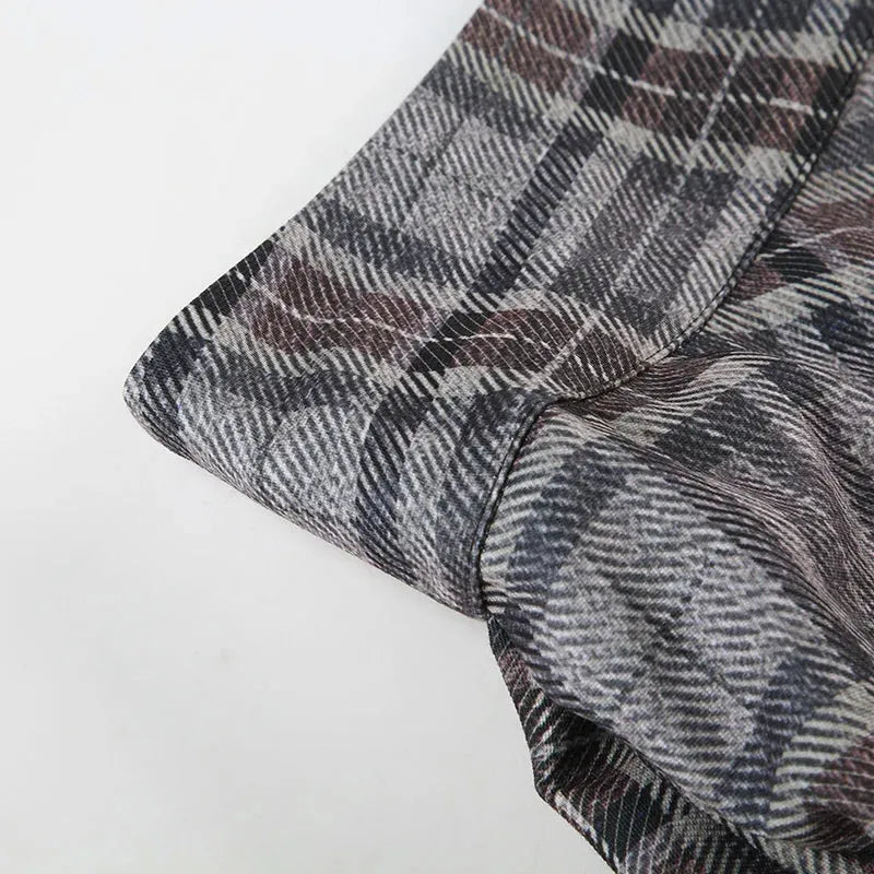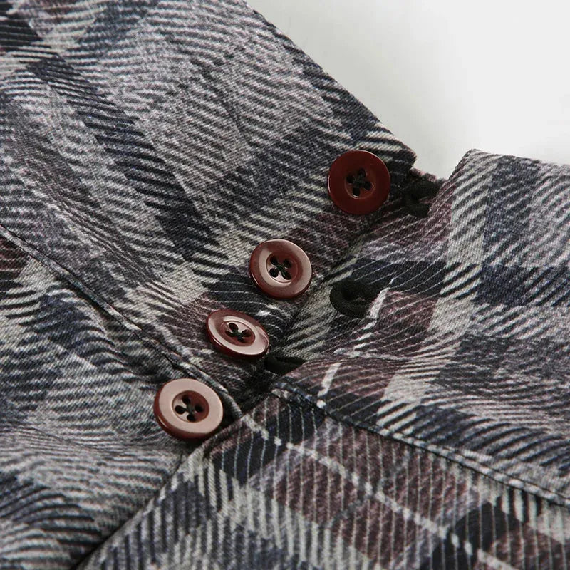 A nod to early 2000s edge, this low-rise plaid mini skirt brings grunge and Y2K together. Structured pleats add volume, while the short hem makes it a bold statement. Pair it with baby tees, cropped tanks, or layered knits for instant street style.