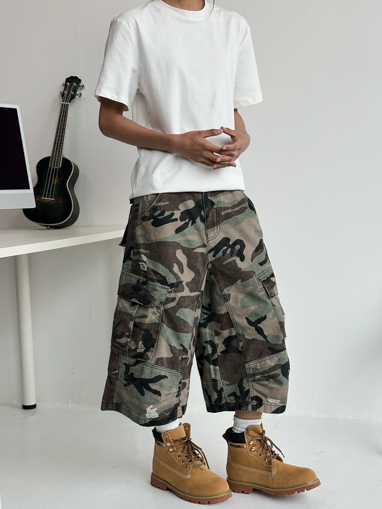 Elevate your casual look with our Men’s Ripped Camouflage Cargo Shorts, designed with a unique patchwork detail that adds a trendy twist to your streetwear wardrobe. Featuring a straight cut and loose fit, these shorts provide ultimate comfort and breathability, perfect for any summer adventure. With multiple pockets for practicality and a stylish camo pattern that never goes out of style, these shorts are a must-have. Don’t miss out on the chance to enhance your casual style—add them to your cart today!