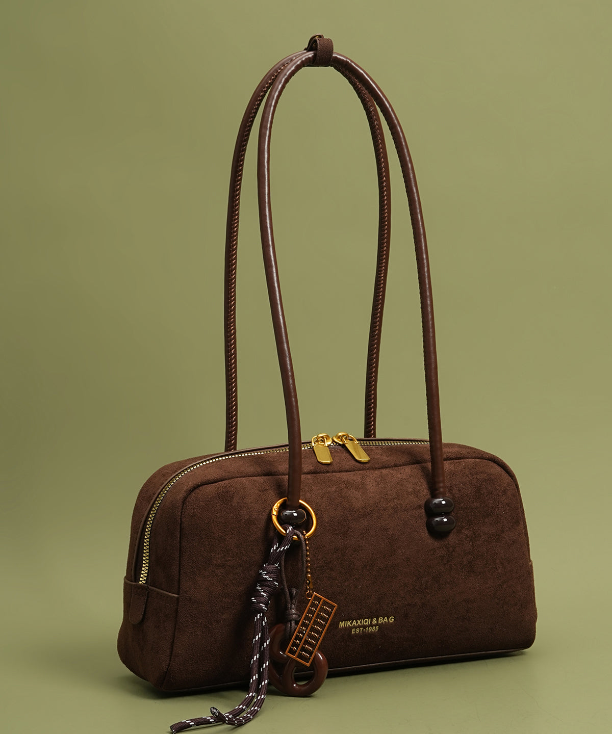 Modern Brown Pendant Decorated Faux Leather Womens Hobo Bag