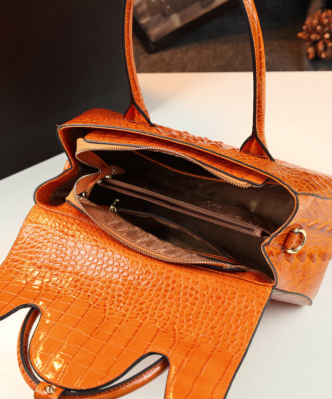 Modern Orange Ox Horn Solid Durable Faux Leather Tote Handbag