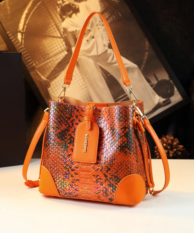 Modern Orange Serpentine Large Capacity Faux Leather Messenger Bag