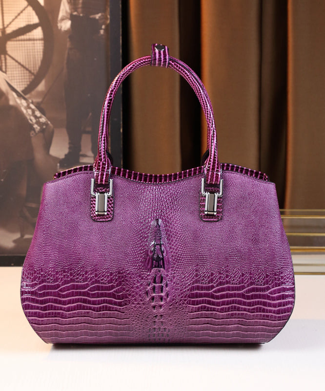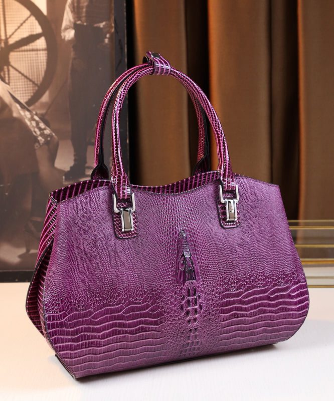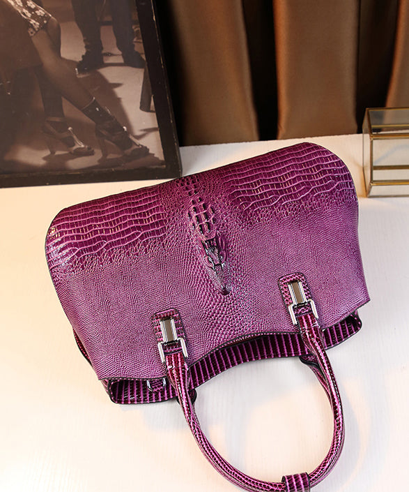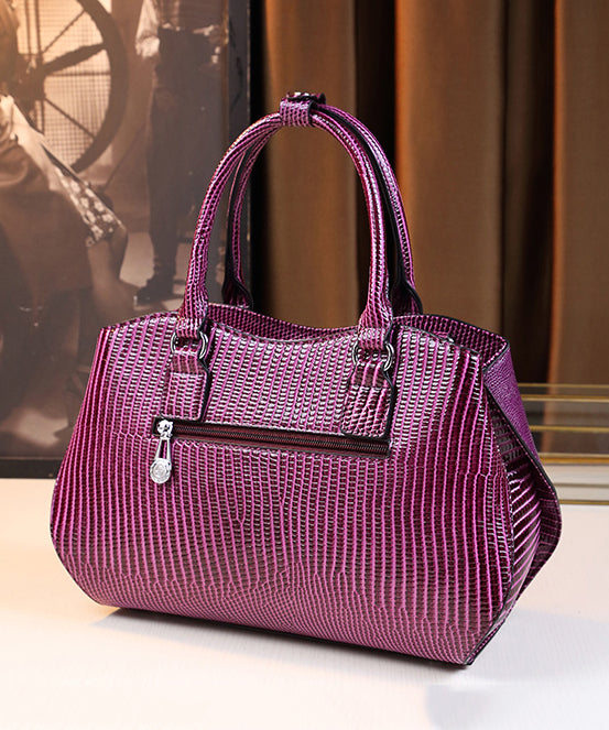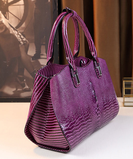 Modern Purple Large Capacity Calf Leather Tote Handbag