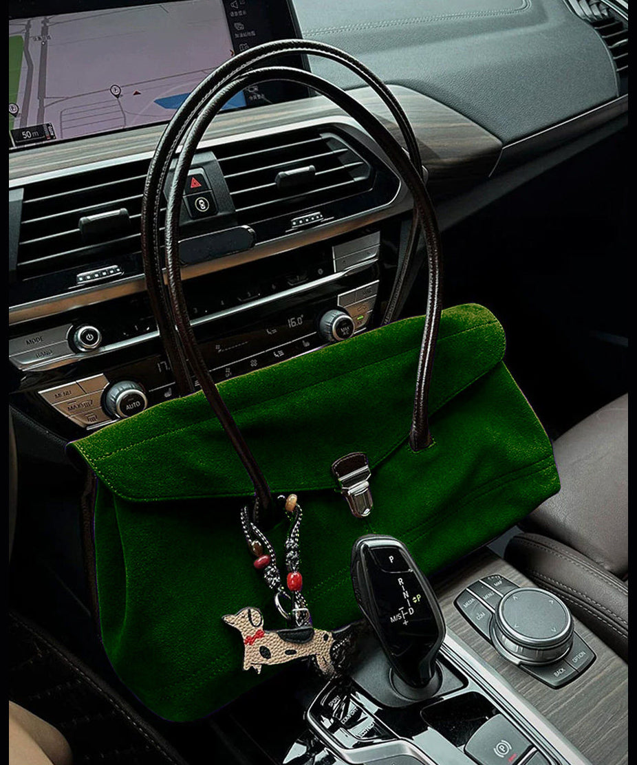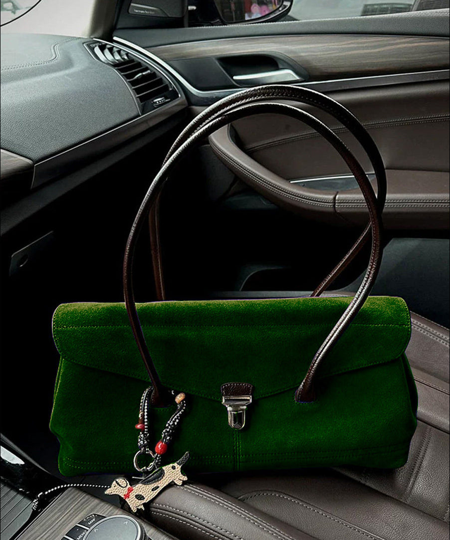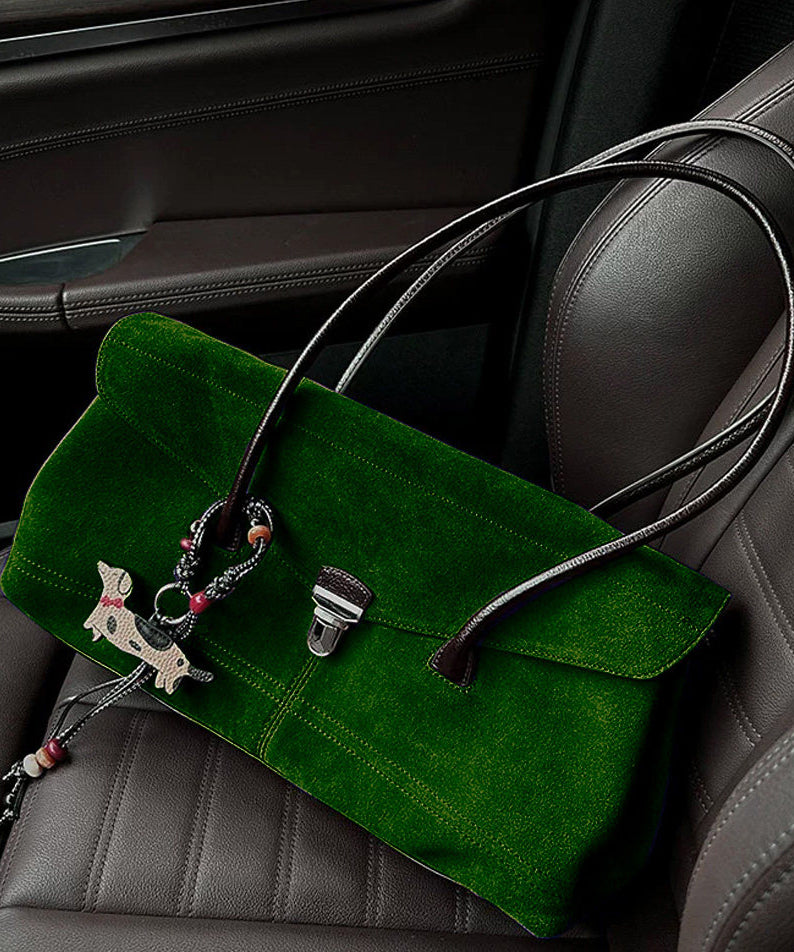 Modern Tea Green Solid Durable Suede Women Shoulder Bags