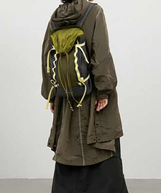 Natural Blackish Green Drawstring Patchwork Outdoors Backpack Bag