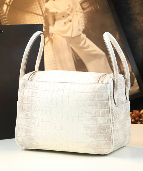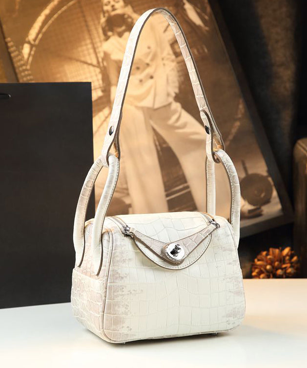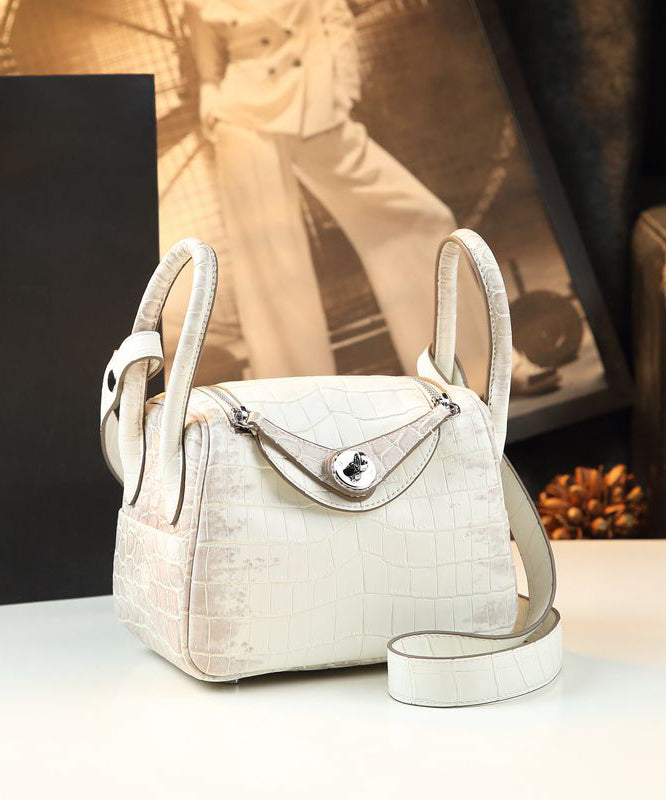 Natural White Alligator Pattern Versatile Satchel Handbag